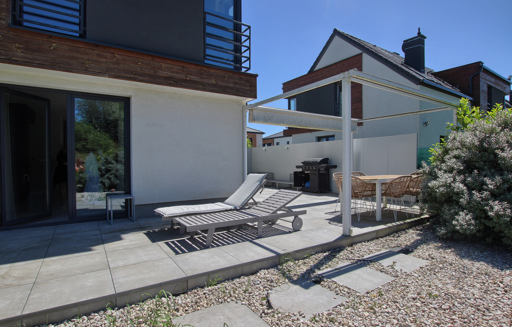 Ogród pięknie zagospodarowany, z licznymi nasadzeniami, podzielony został na strefy wypoczynku: do opalania( są wygodne leżaki) grillowania lub relaksu przy zainstalowanym palenisku.