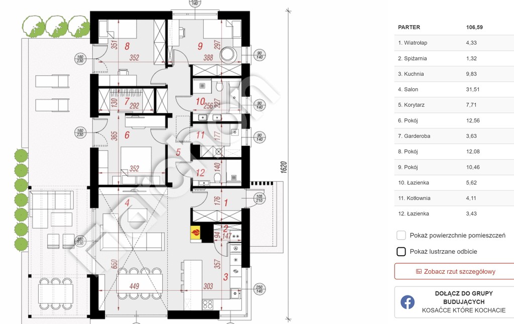 Do sprzedania nowo powstająca inwestycja domu jednorodzinnego w miejscowości Niedźwiedź na działce 630 m2 w bezpośrednim sąsiedztwie lasu. Dom budowany wg projektu Archonu Dom w Kosaćcach 38 https://www.archon.pl/projekty-domow/projekt-dom-w-kosaccach-38-m6ee27e80f6901 Dom sprzedawany jako pełny stan deweloperski, termin sierpień 2025 za kwotę 825 tyś zł netto, 891 tyś zł brutto. Nieruchomość budowana z bloczków sylikatowych, ocieplona styropianem 20 cm, grafit, pokryta dachówką ceramiczną, okna PCV ciepły montaż . Własne ujęcie wody ze studni głębinowej. Ogrzewanie podłogowe rozprowadzone w całości budynku zasilane pompą ciepła. Osiedle domów jednorodzinnych, blisko las, cisza i spokój. Do podanej ceny netto należy doliczyć podatek VAT wysokości 8%. Zainteresowane osoby zapraszam do kontaktu z maklerem prowadzącym. Kupujący nie płaci podatku PCC.