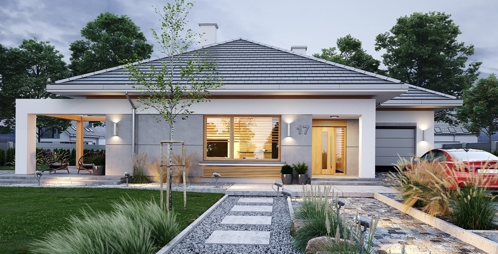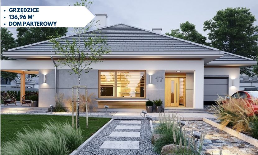 Zapraszam do zapoznania się z ofertą "Parterowy Dom Wolnostojący z grażem w bryle budynku" o powierzchni całkowitej ~ 136,96 m², położonego nieopodal Szczecina i Stargardu, znajdującego się w bardzo atrakcyjnej lokalizacji Grzędzice na końcu drogi wewnętrznej, 30m od drogi gminnej.