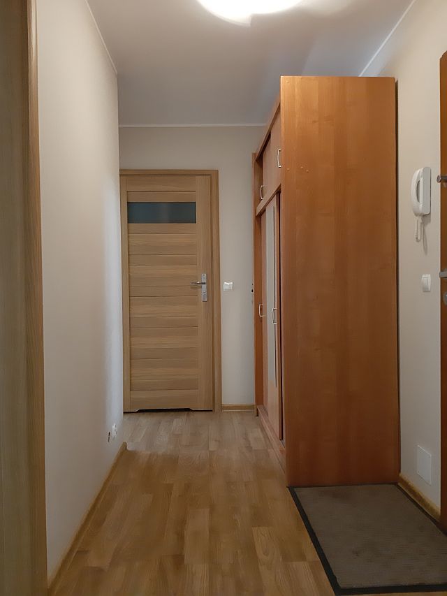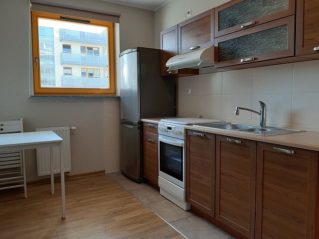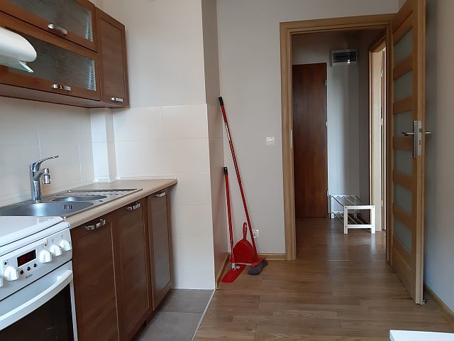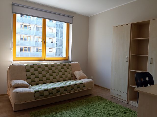 Przedmiotem oferty jest rozkładowe mieszkanie 2 pokojowe z dwoma pokojami oddzielnymi i oddzielną kuchnią. W każdym pokoju kanapotapczan rozkładany. Mieszkanie wyposażone w 2 szafy, biurko, kuchnia wyposażona w sprzęt agd (lodówka, kuchenka gazowa z piekarnikiem, duża lodówka). Łazienka z częścią prysznicową, razem z wc, pralka. Blok nowy, z cichobieżną windą. W jednym pokoju wyjście na spory balkon. Wymagany najem okazjonalny (koszty notarialne pokrywa właściciel). Mieszkanie nie jest przeznaczone dla osób ze zwierzętami. Dodatkowe opłaty to czynsz 430 zł, prąd i gaz na kuchence (ok. 20 zł). Przy podpisaniu umowy najmu, wymagana kaucja oraz jednorazowa opłata do biura nieruchomości. Najem możliwy od 4 sierpnia. Tylko najem okazjonalny, koszt notariusza po stronie właściciela mieszkania.