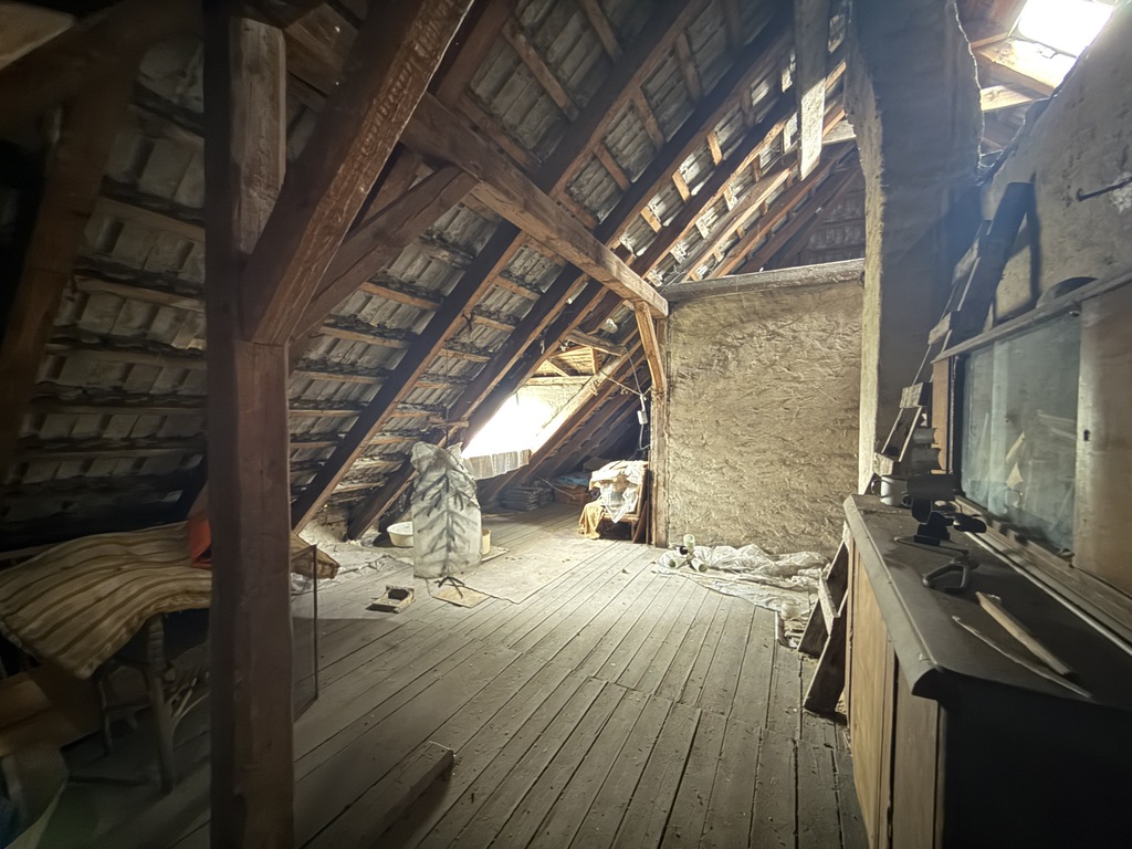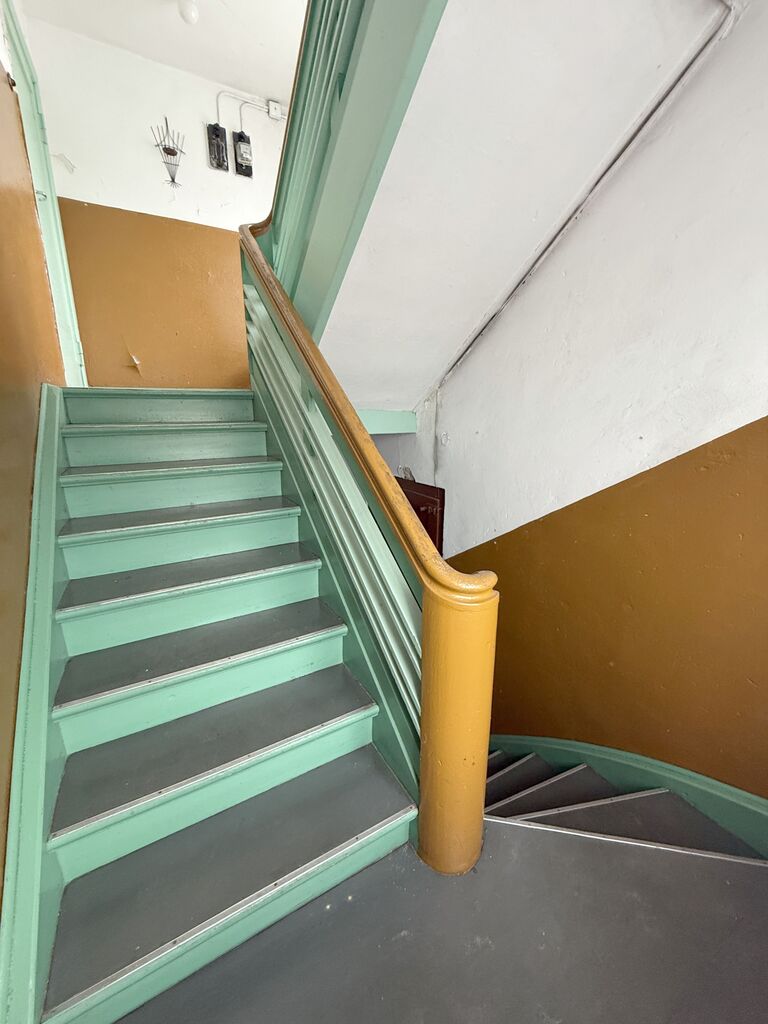 Dom wymaga dużej modernizacji. Na każde piętro prowadzą solidne drewniane schody. Okna w domu stare drewniane.