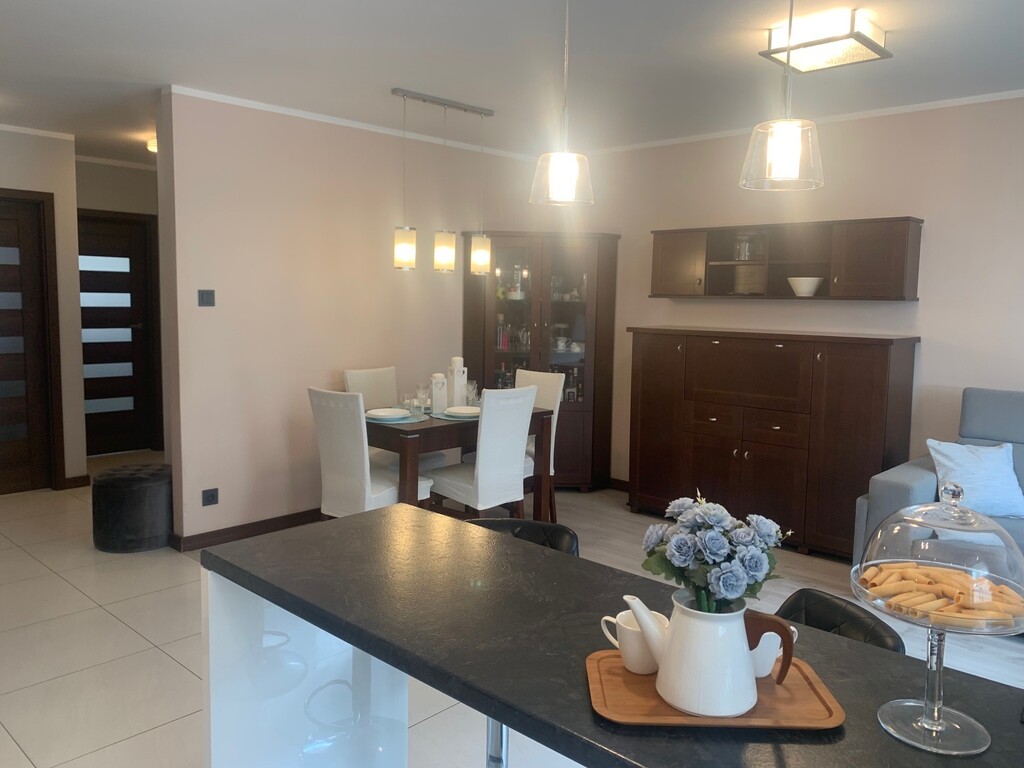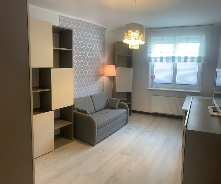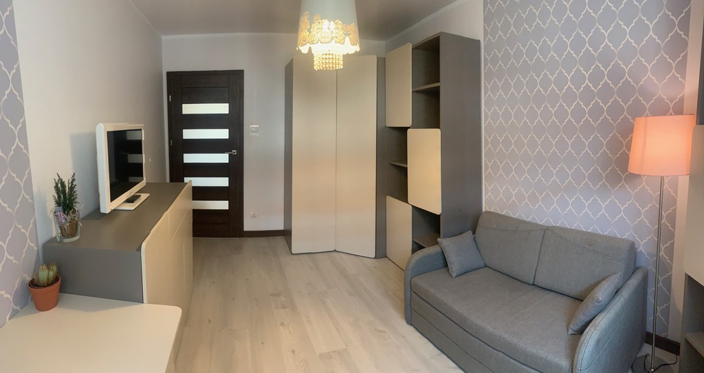 Mieszkanie jest gotowe do wydania wraz z całym wyposażeniem. W jednej z sypialni meble VOX. W salonie meble drewniane wykonane na zamówienie.