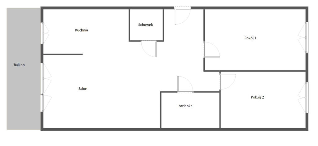 Obok kuchni znajduje się schowek/garderoba o powierzchni około 1,5.
