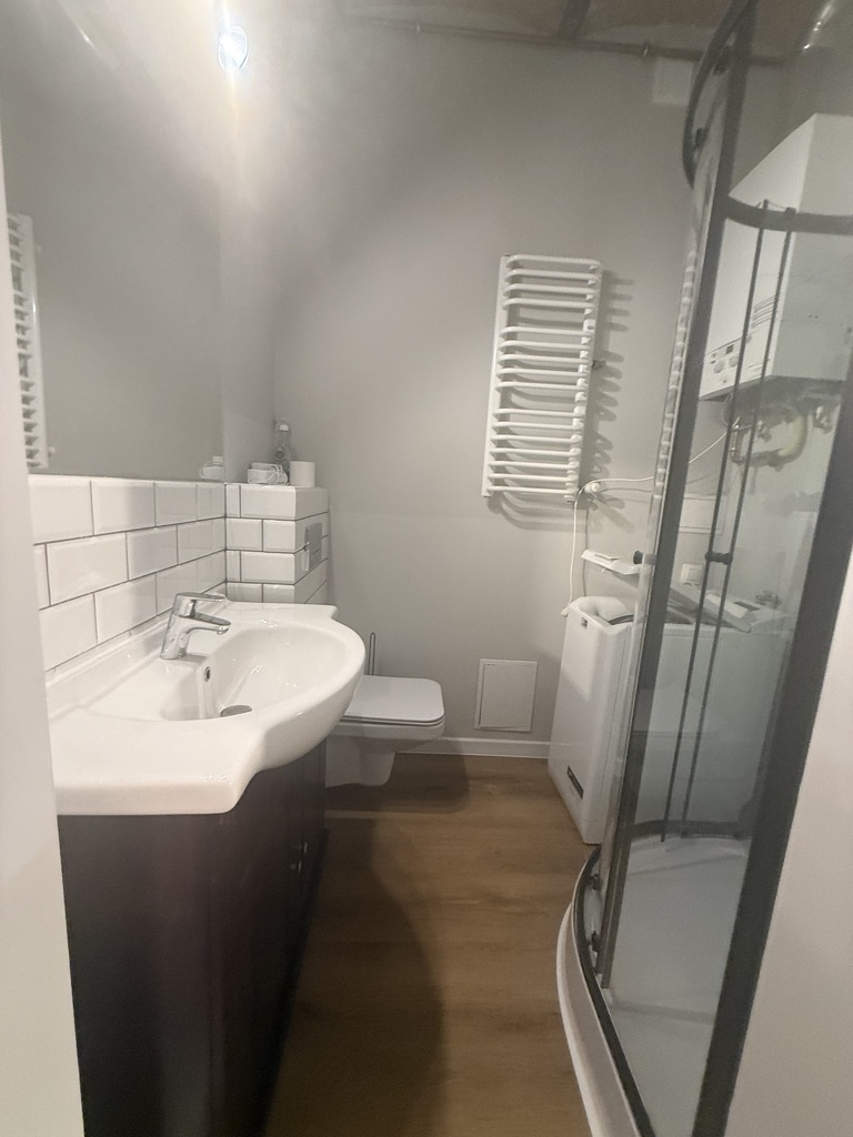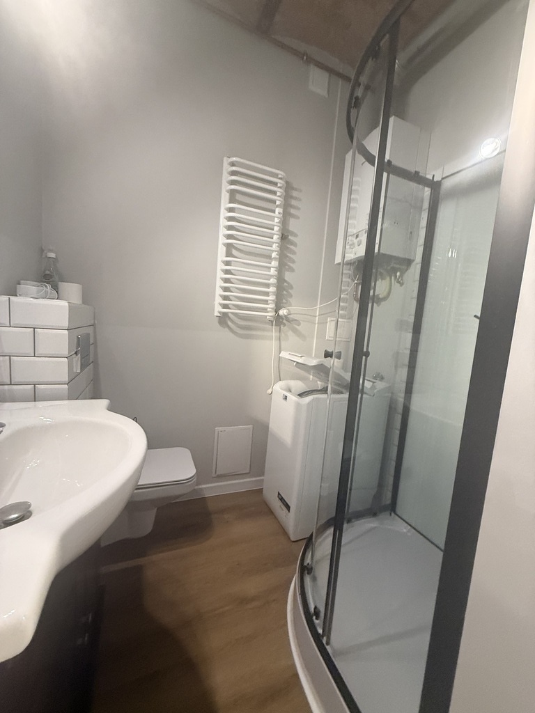 - łazienka z kabiną prysznicową oraz wc w glazurze i terakocie