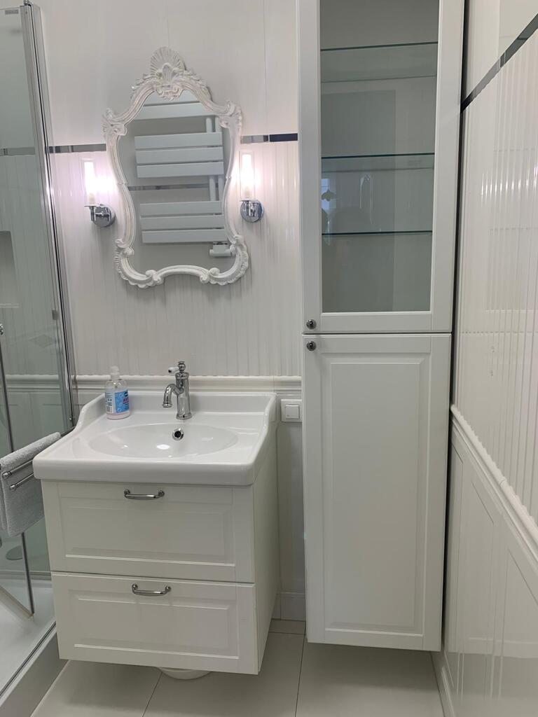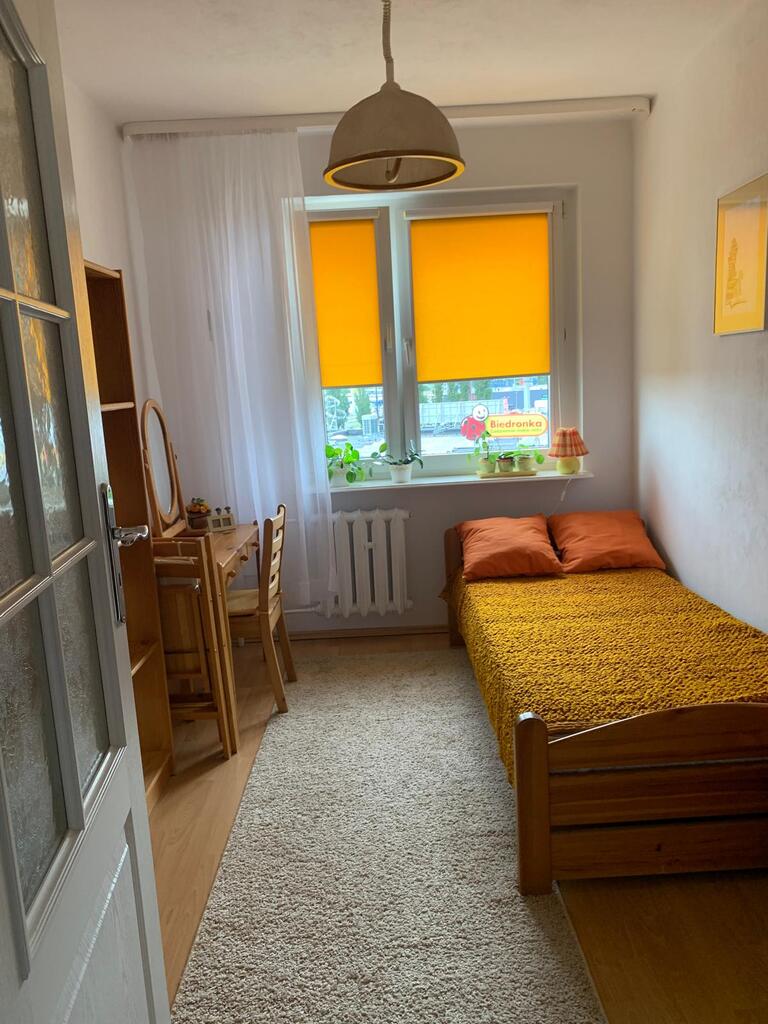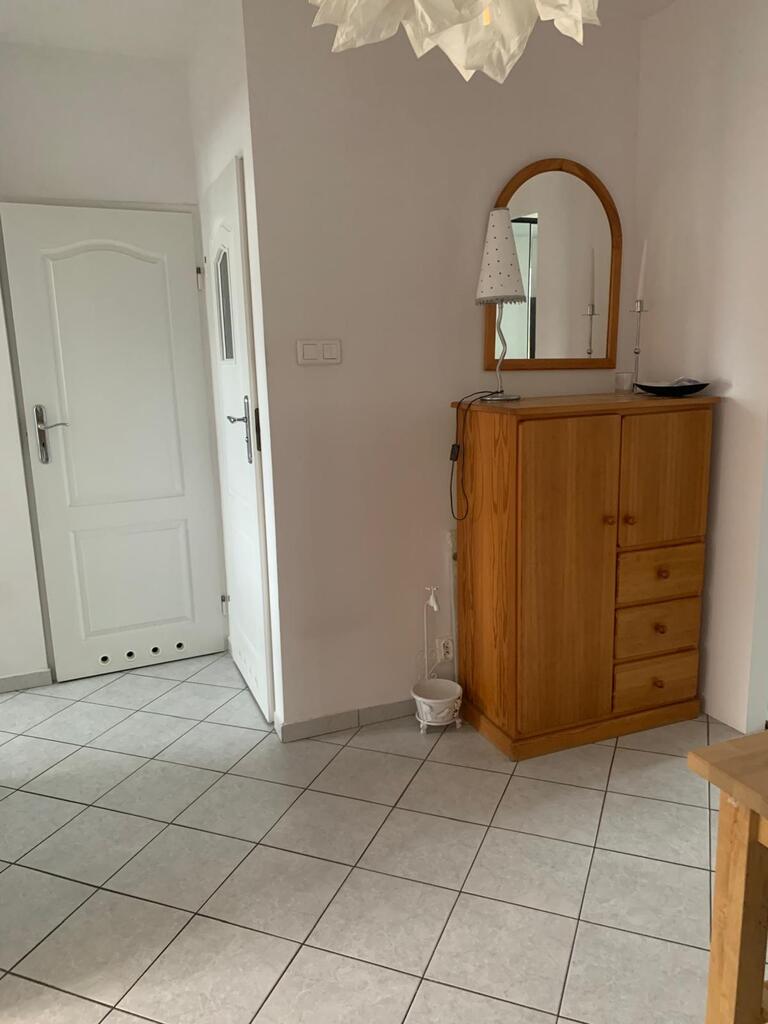 W mieszkaniu na podłogach w pokojach panele; w przedpokoju, kuchni, łazience i wc terakota. Ściany z wyjątkiem jednego pokoju w którym położona jest tapeta do malowania, gładzone i malowane. Łazienka i wc, przeszły remont kilka lat temu, wyłożone są jasną glazurą. W łazience kabina prysznicowa, miejsce na pralkę/ kilkuletnia pralka w b. dobrym stanie zostaje w cenie mieszkania/, umywalka, szafka. Osobne wc w którym nad geberitem znajduje się zabudowana szafka. Kuchnia również po remoncie kilka lat temu, zabudowa na wymiar w stylu prowansalskim; zmywarka, mikrofala, płyta gazowa oraz piekarnik gazowy/ w czynszu wliczony ryczałt za gaz w wysokości 12 zł/. Duży przedpokój w którego jednej części znajdują się dwie budowany szafy. Wszystkie meble widoczne na zdjęciach pozostają w cenie mieszkania.