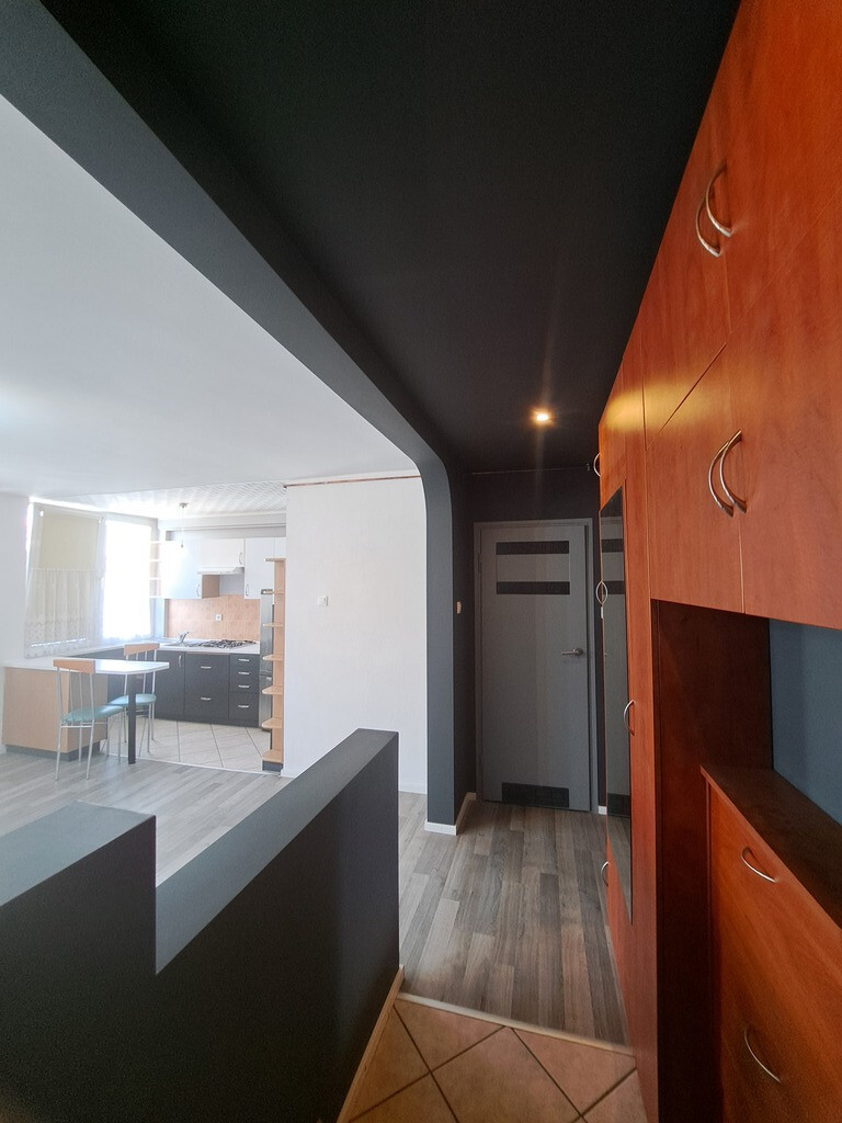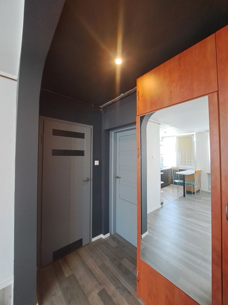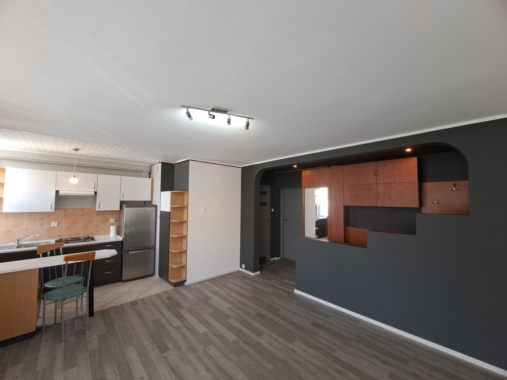 Proponowane lokum znajduje się na 4 piętrze i składa się z dwóch pokoi, widnej kuchni (ale otwartej na duży pokój), łazienki oraz korytarza. Mieszkanie jest odnowione i nadaje się do zamieszkania.
