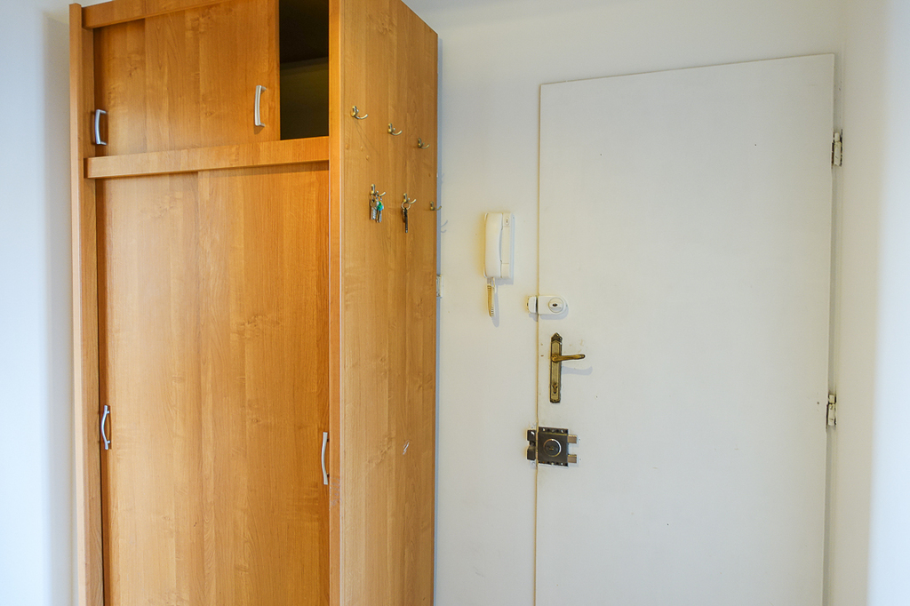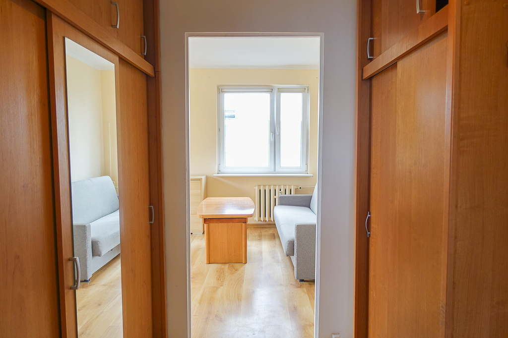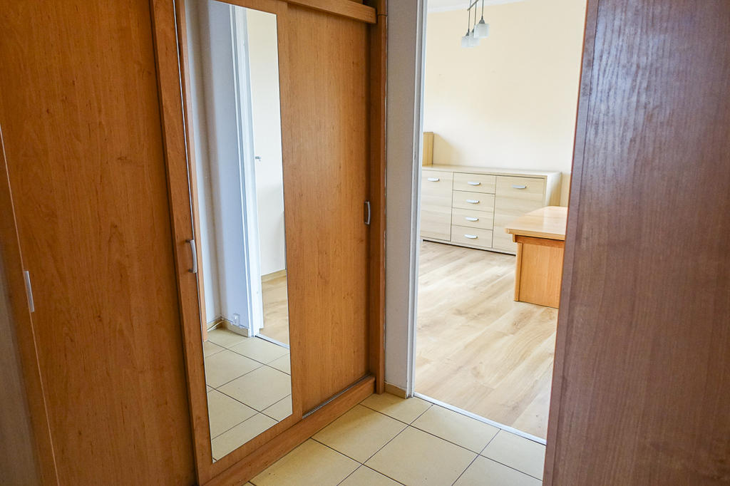 OPIS MIESZKANIA: Pokoje 16 m2 i 14 m2. W małym pokoju szafa. W przedpokoju 2 szafy 3 - drzwiowa i dwudrzwiowa. Łazienka 3 m2 i WC oddzielnie.