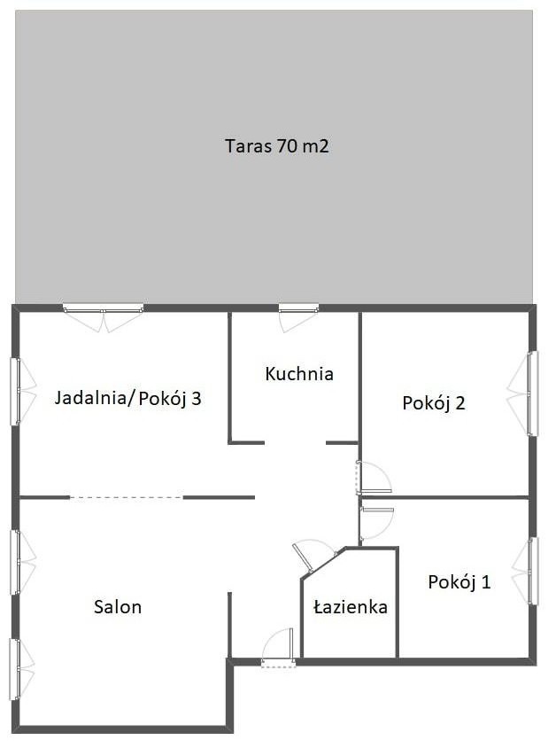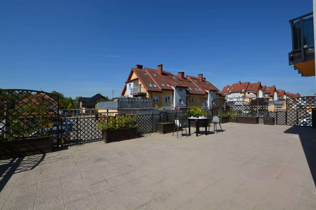 Dodatkowo przestronny taras o powierzchni 70m2, idealny do relaksu i spotkań na świeżym powietrzu.