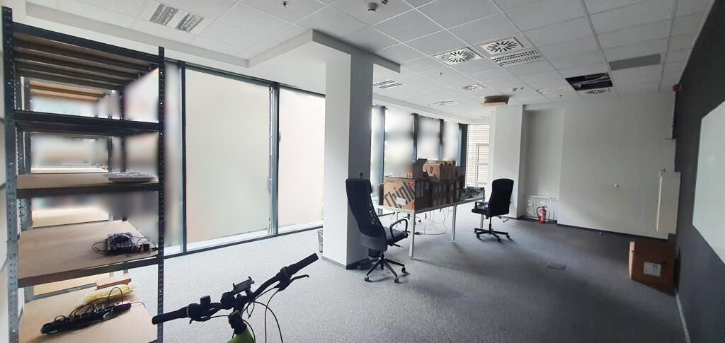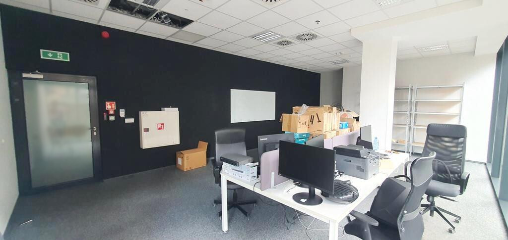 Na podłogach lokalu wykładzina biurowa pod spodem podniesiona tzw. podłoga techniczna z puszkami podłogowymi, sufity podwieszane z oświetleniem rastrowym, systemem ogrzewania i klimatyzacji z regulacją strefową.