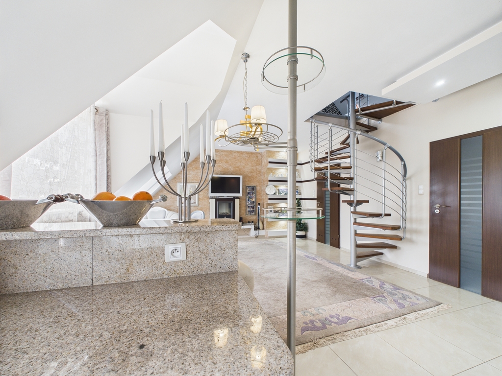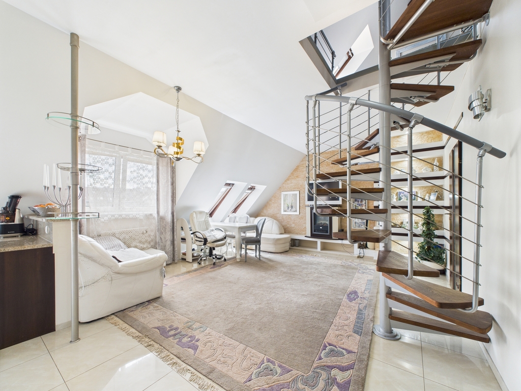 Mieszkanie zostało przerobione na dwupoziomowe w 2007 r. -zaprojektowane i wykończone przez architekta.