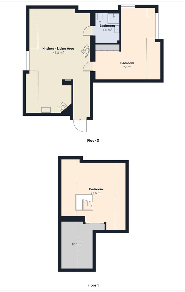 - przestronny salon z aneksem kuchennym oraz schodami prowadzącymi na poddasze