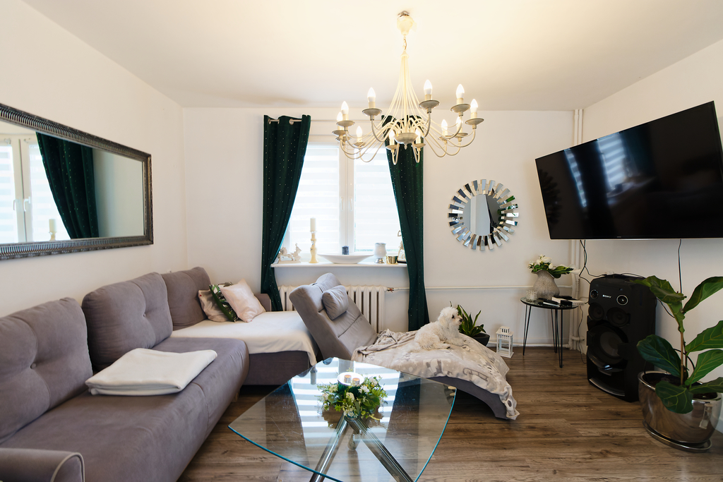• salon (zrobiony z dwóch pokoi) ok 36 m2 z wyjściem na taras
