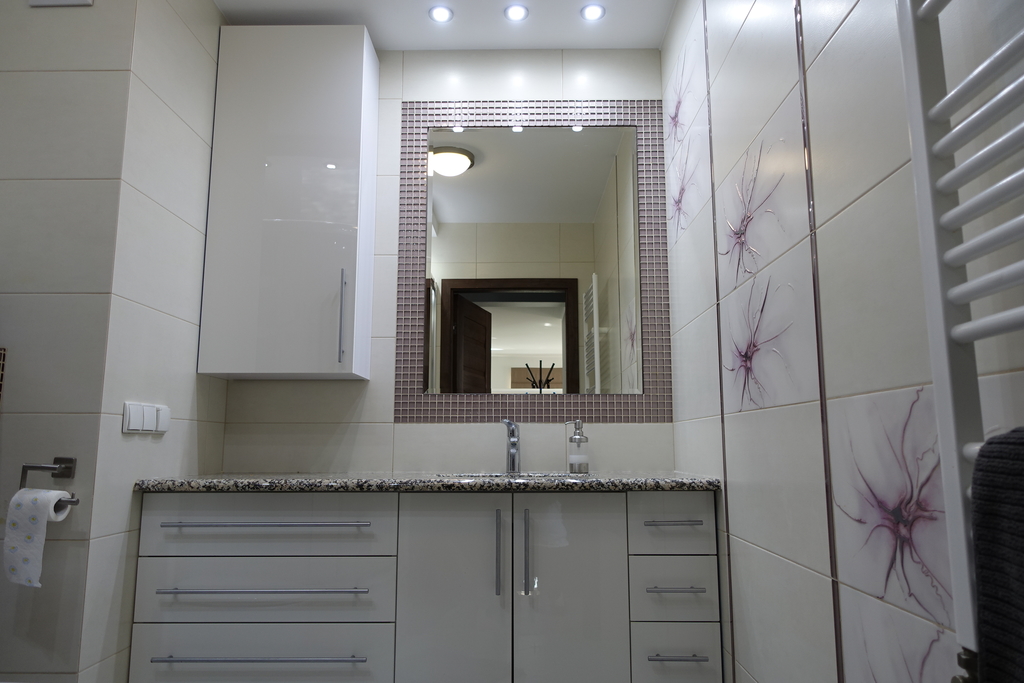 W pokojach na podłogach dobrej klasy panele, ściany malowane na pastelowe kolory.