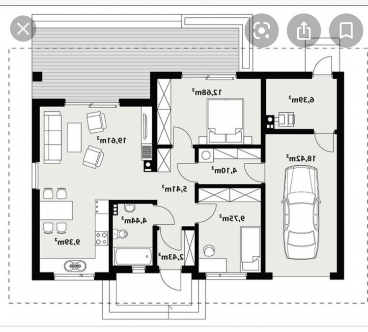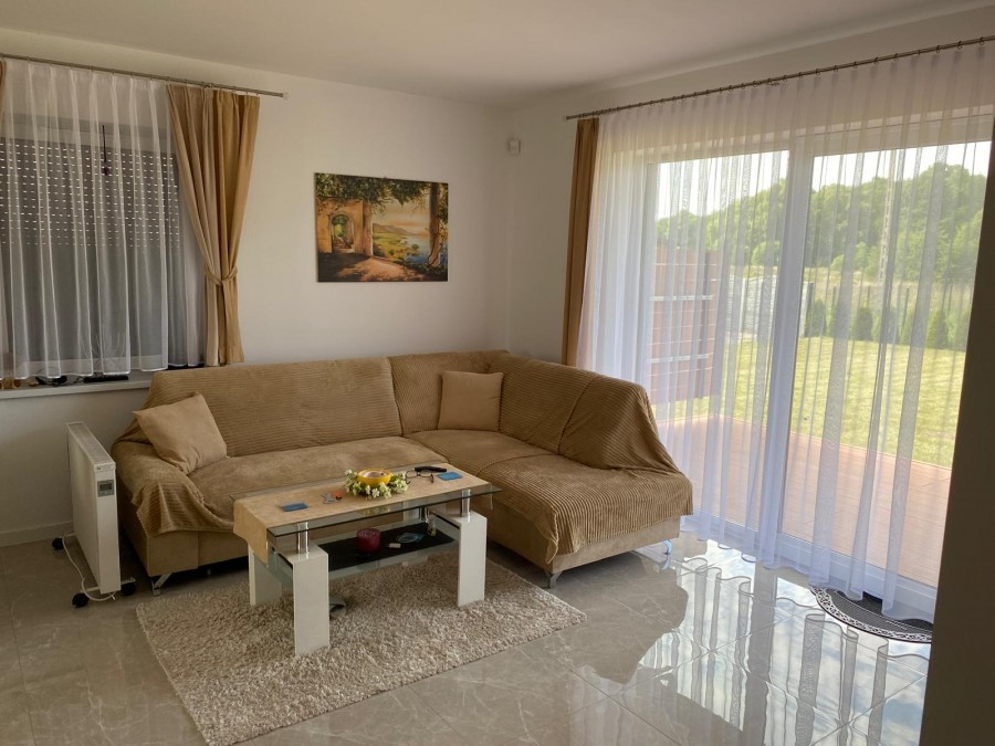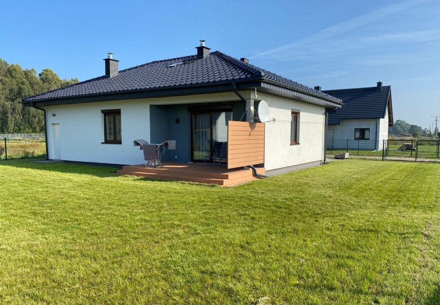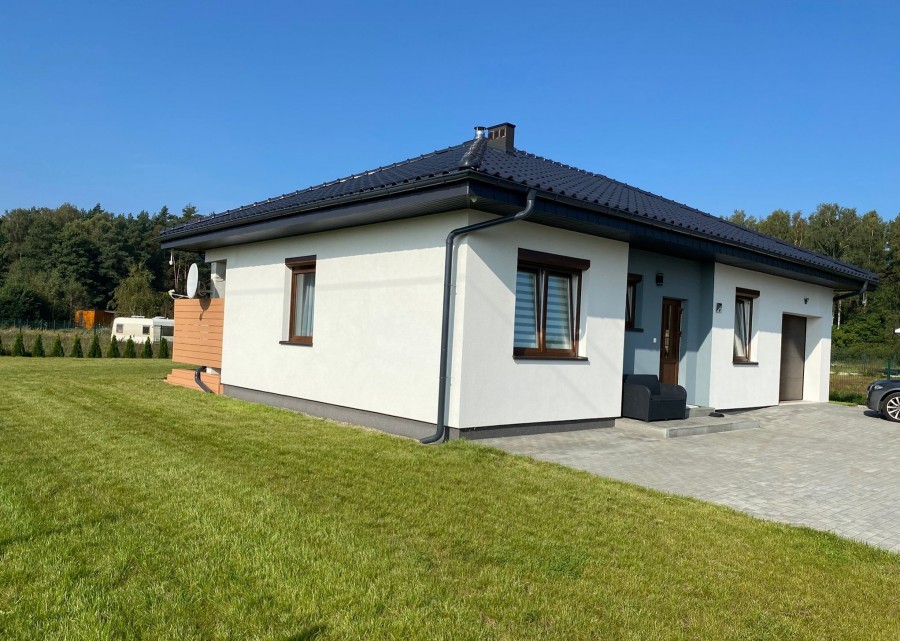 Dom parterowy o bardzo przestronnym układzie ,duży salon z otwartą kuchnią, dwie sypialnie Łazienka Pomieszczenie gospodarcze i garaż.