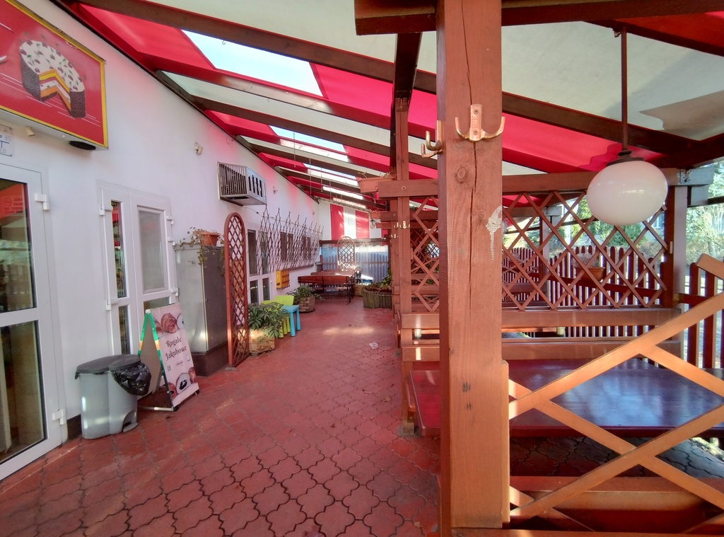 Na zewnątrz lokalu znajduje się ogródek ok.60 m2 na 60 miejsc, jest on dzierżawiony od miasta, z możliwością zakupu.