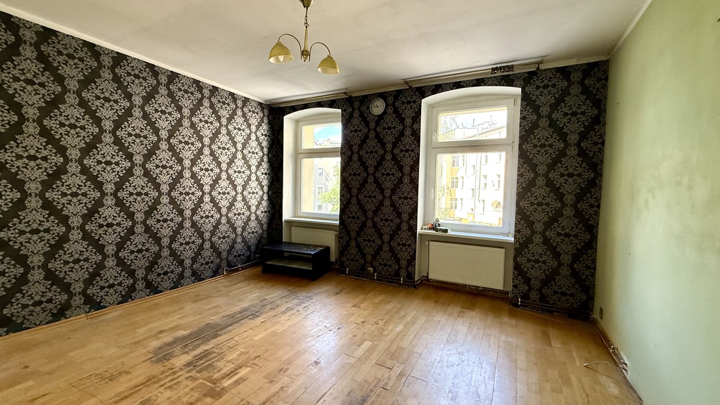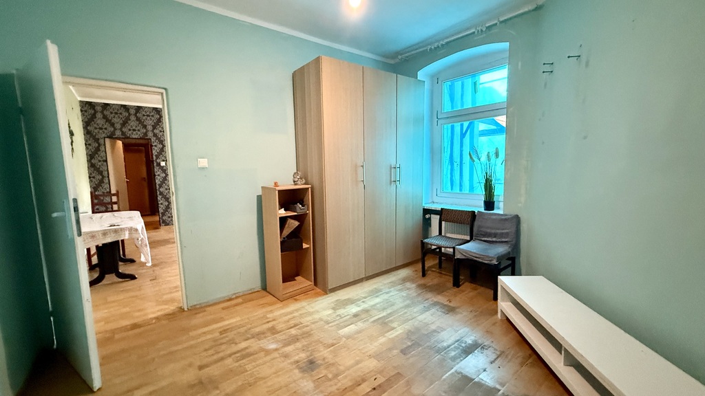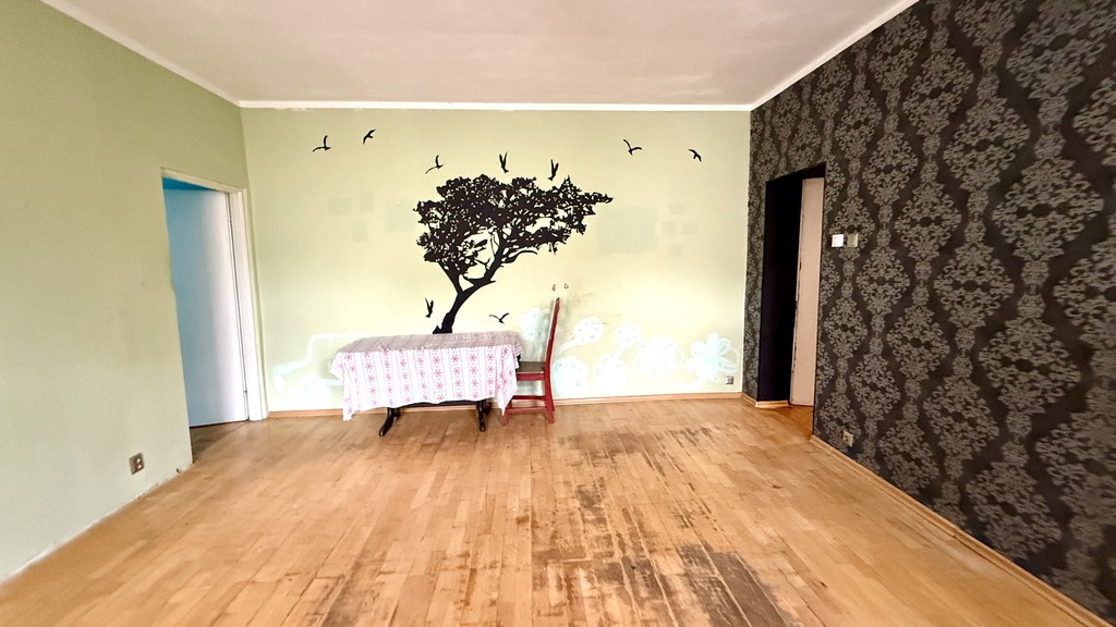 Mieszkanie do remontu, składa się z 2 pokoi (jeden przechodni), przedpokoju, osobnej kuchni i przechodniej łazienki.