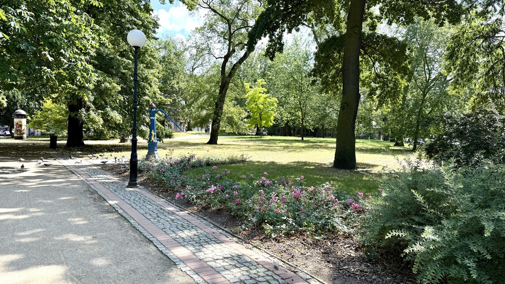 Spokojna, boczna uliczka przy parku gen. Władysława Andersa.