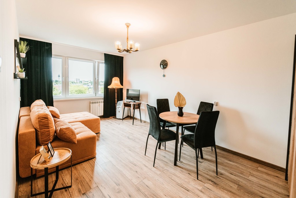 W pełni wyposażoną nowoczesnym sprzętem i nowymi meblami, pozostaje to co widać na zdjęciu czyli mieszkanie gotowe do wprowadzenia.