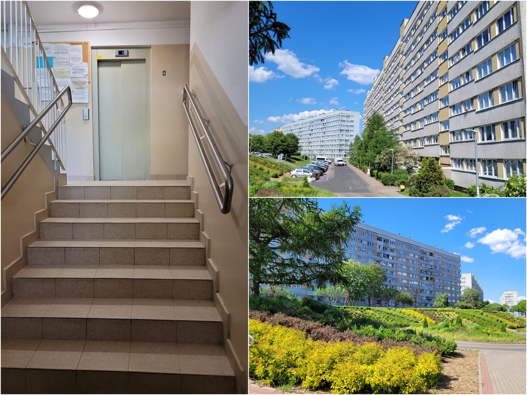 Klatka schodowa czysta po remoncie, komfort mieszkańców bloku zapewnia nowa, cicha winda .