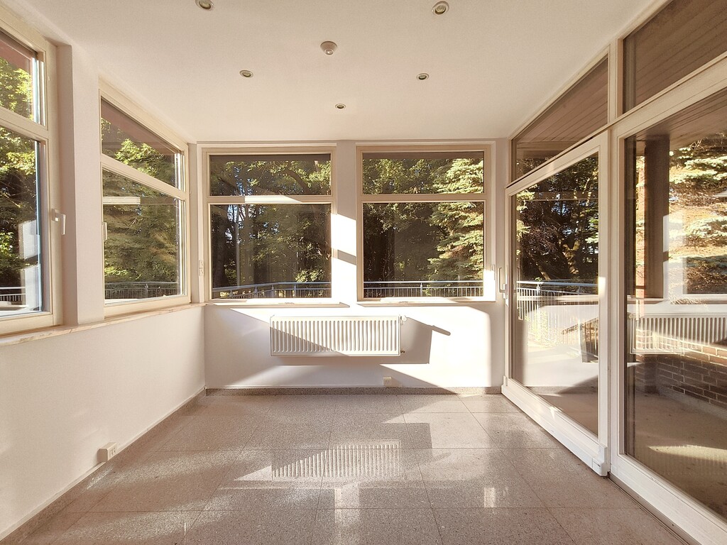 Jedno z pomieszczeń, w formie ogrodu zimowego, z wyjściem na duży taras od strony parku.
