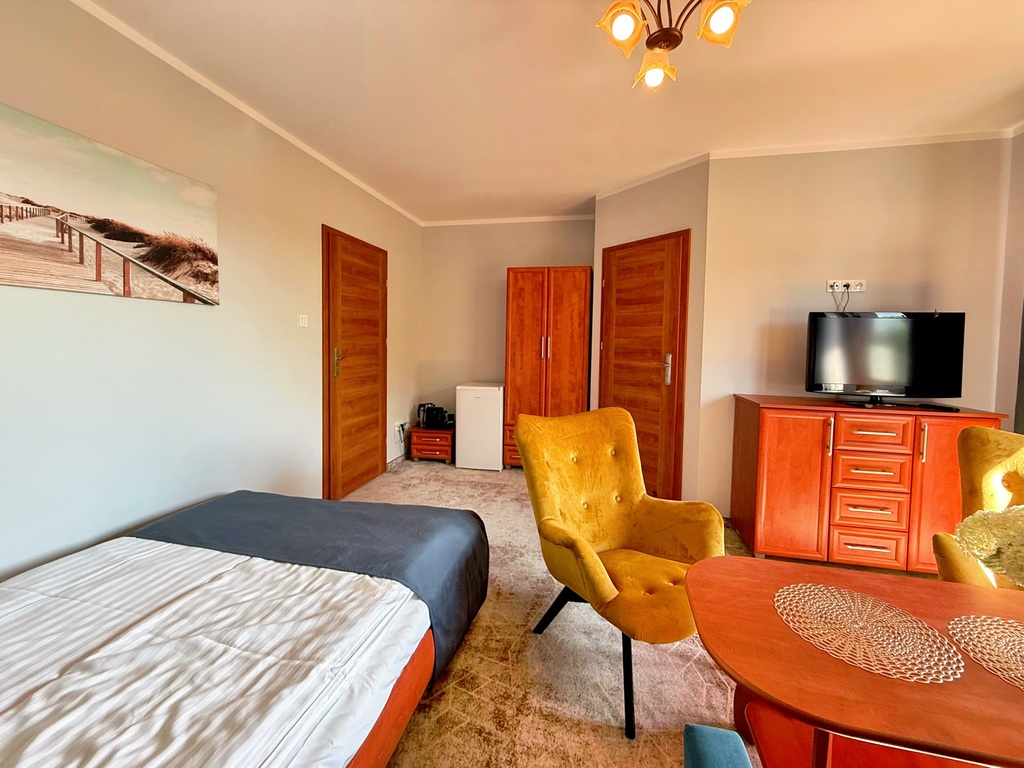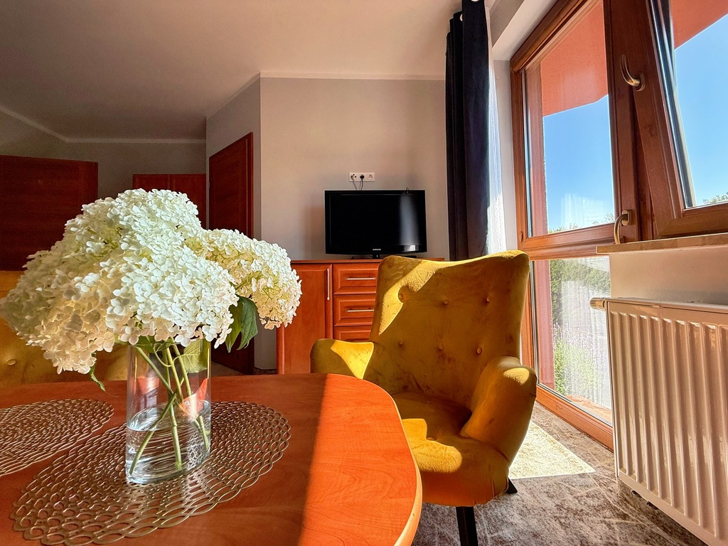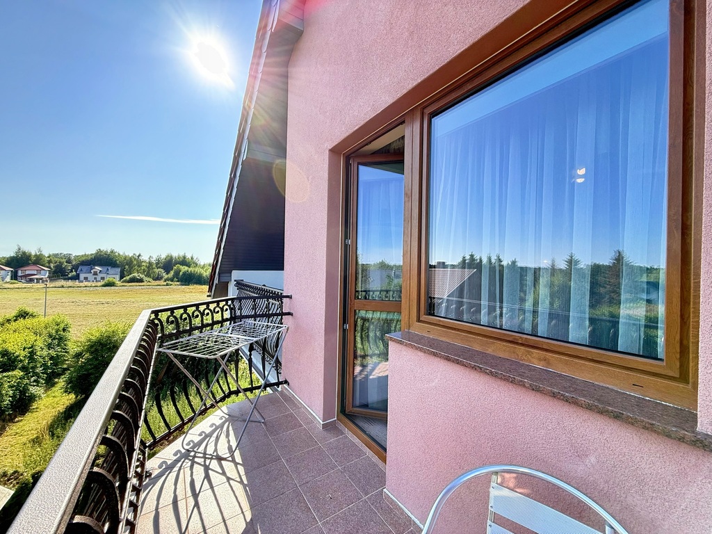 Pensjonat jest jasny, przestronny i w pełni przystosowany do działalności turystycznej. Wysokiej jakości materiały wykończeniowe (pustak ceramiczny, dachówka ceramiczna, okna trzyszybowe PCV) oraz ocieplenie budynku zapewniają wygodę i energooszczędność. Ponadto, budynek przeszedł gruntowny remont w 2023 roku, który obejmował zarówno odświeżenie wnętrz, jak i doposażenie pensjonatu w nowe elementy wyposażenia, takie jak meble hotelowe, telewizory, lodówki i ekspresy do kawy.