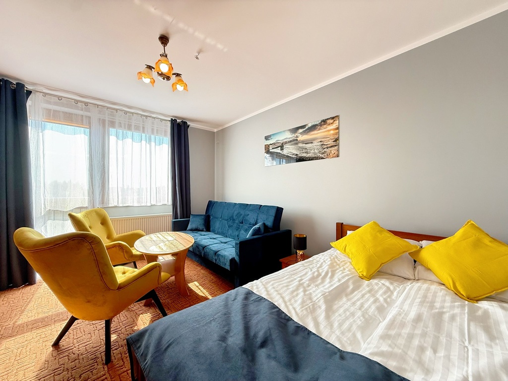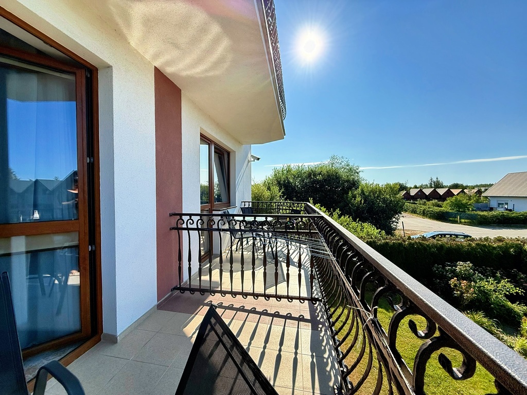 Każdy pokój posiada prywatną łazienkę, balkon lub taras (pokoje na parterze), a ponadto wyposażony jest w meble, telewizor, lodówkę i ekspres do kawy. Wysokiej jakości wykładziny hotelowe oraz ogniotrwałe materiały użyte w pokojach podnoszą komfort i bezpieczeństwo gości.