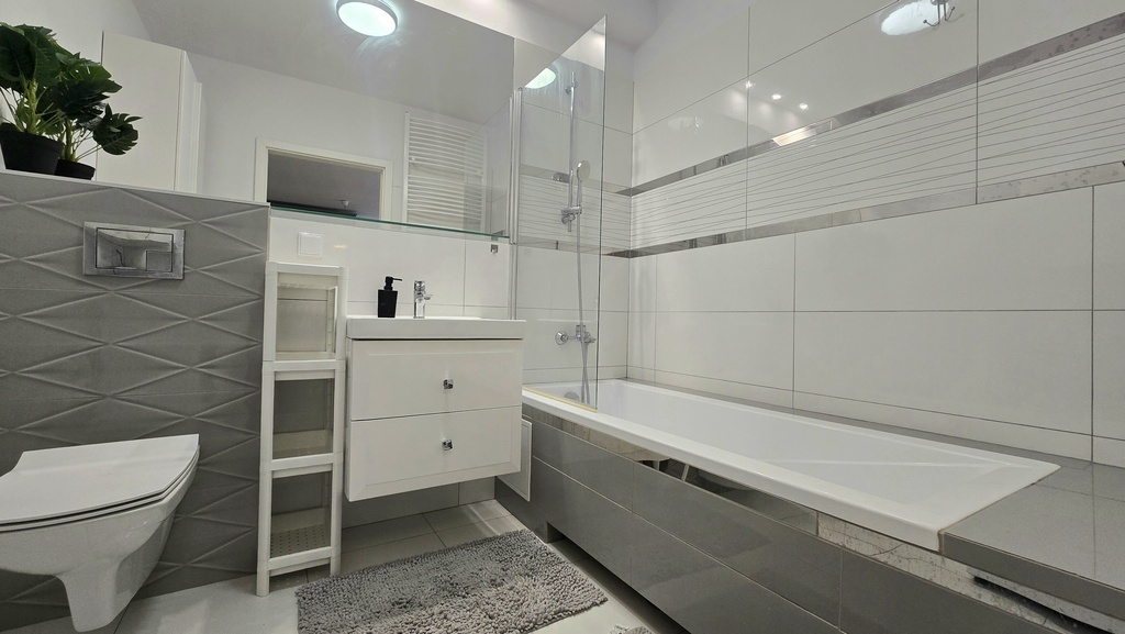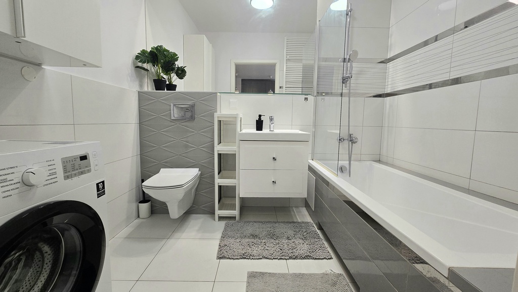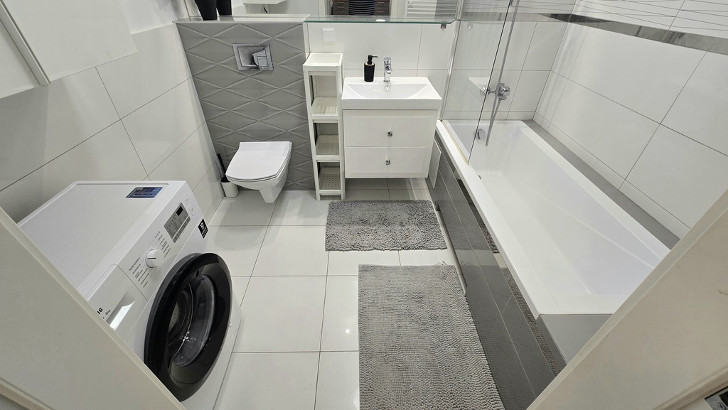 - łazienki z wanną i pralką