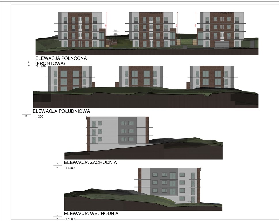 - 3 budynki wielorodzinne, z niezbędną infrastrukturą techniczną
