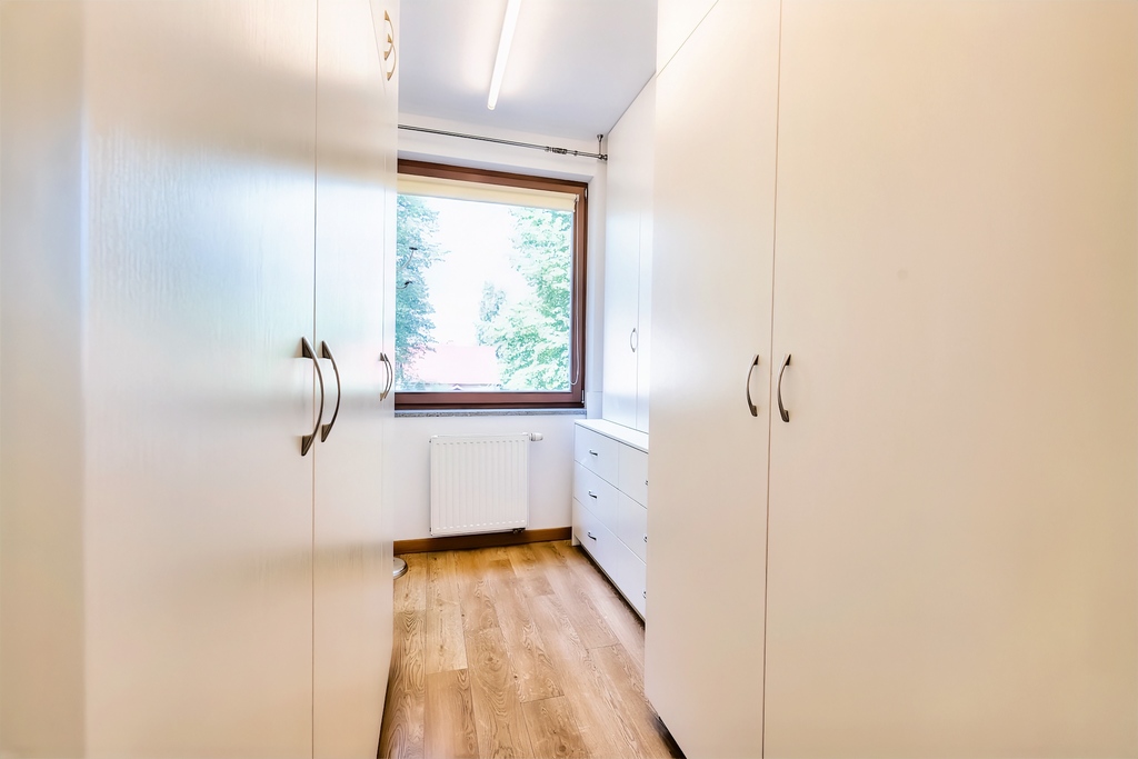 Mieszkanie, w którym każdy detal został dopracowany, by zapewnić najwyższy komfort codziennego życia. Duże, panoramiczne okna pozwalają cieszyć się widokiem na zieleń i dają poczucie przestronności. Dzięki wysokim sufitom (2,90 m), wnętrza wydają się jeszcze bardziej przestronne, co dodatkowo podkreśla elegancki charakter tego apartamentu.