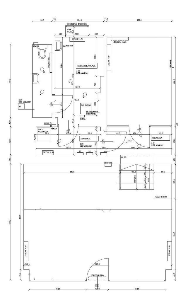Część socjalna oraz WC wykończone w glazurze i terakocie.