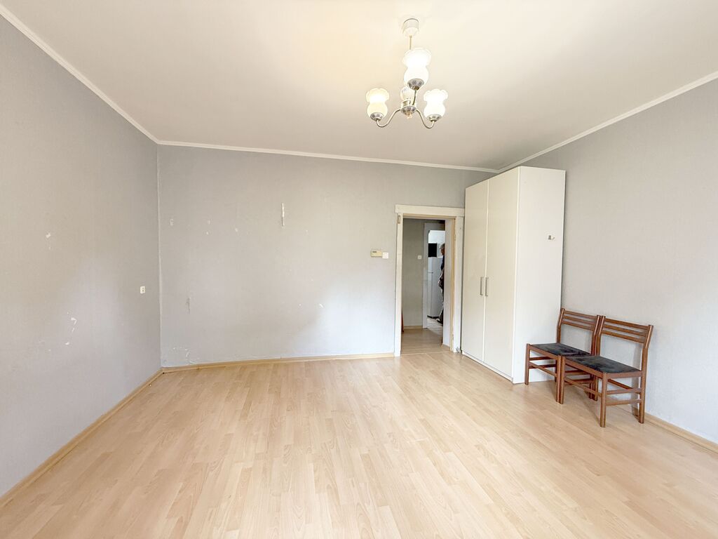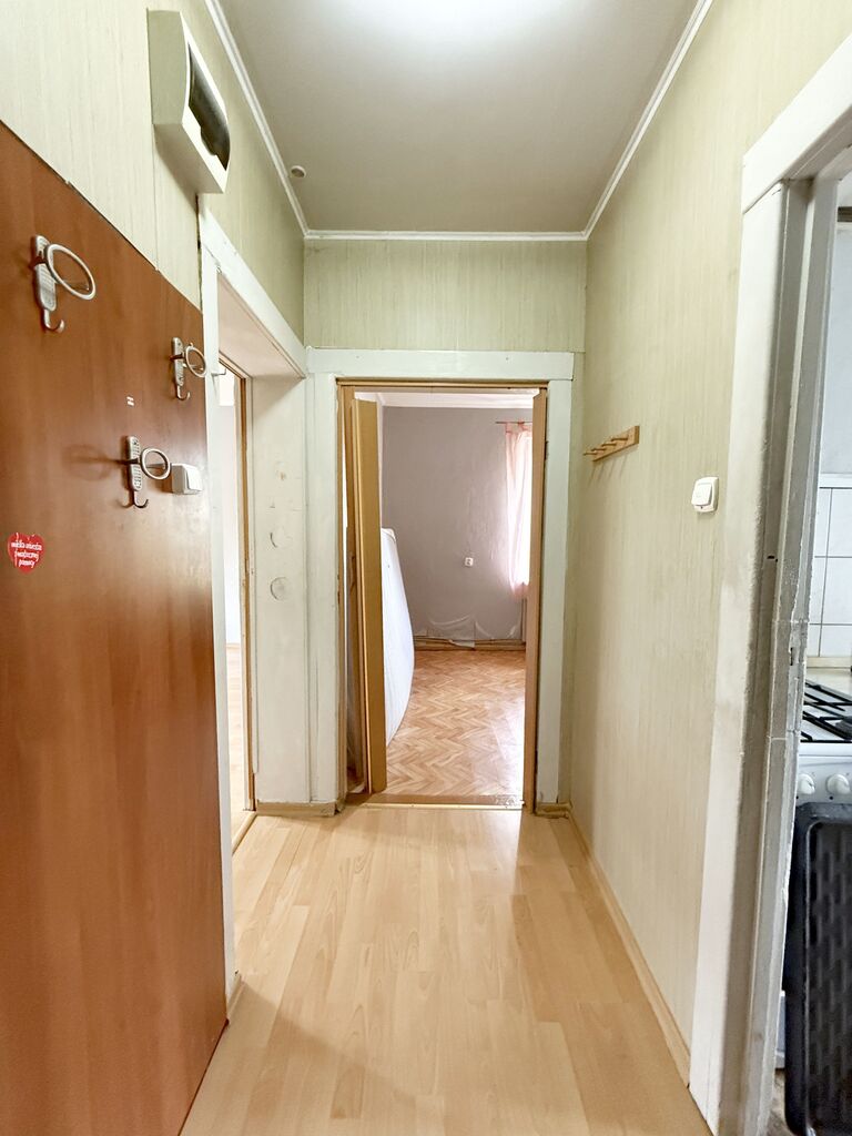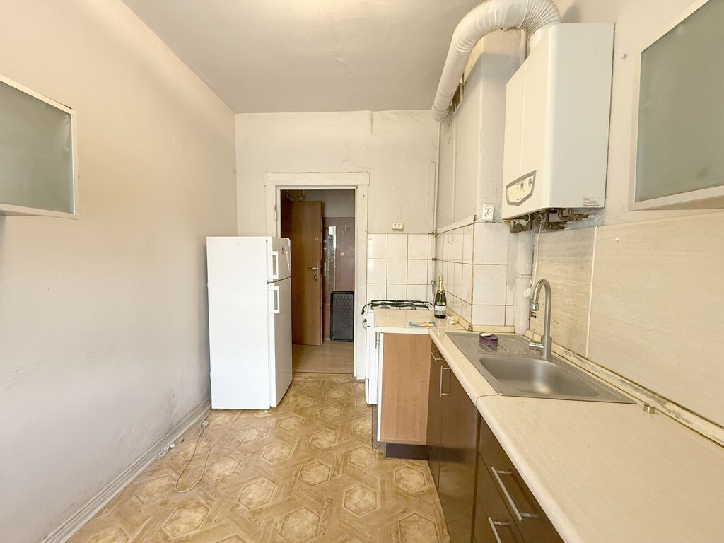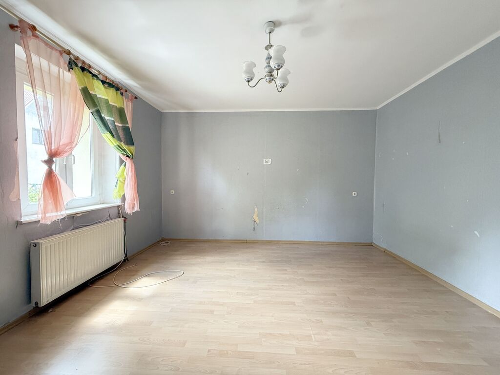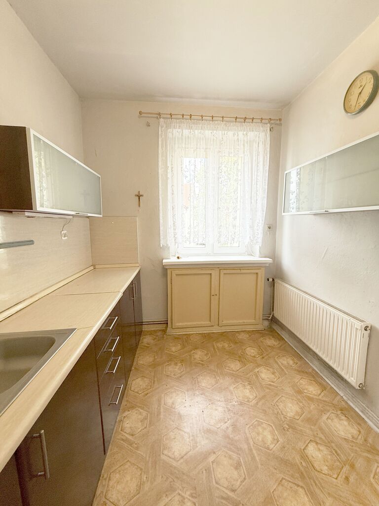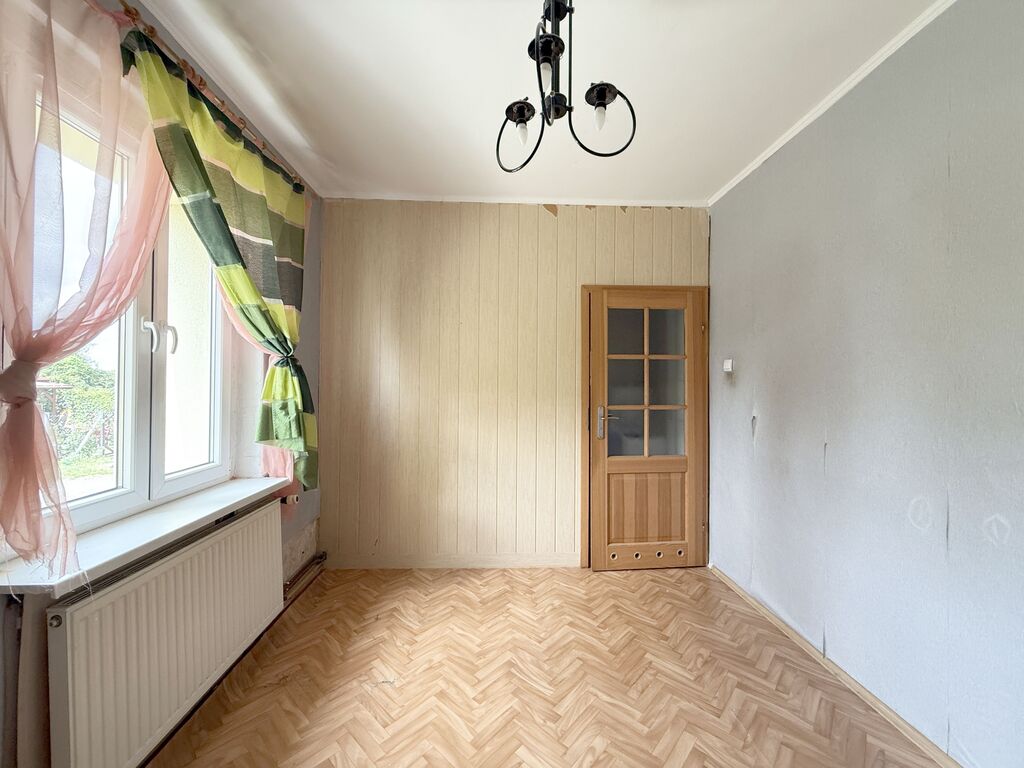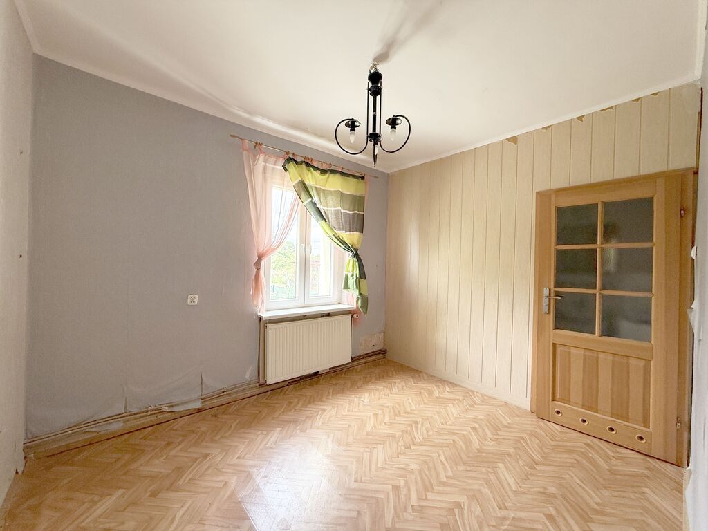 Okna PCV, na podłogach położone panele i linoleum. Ogrzewanie z pieca gazowego dwuobiegowego. Mieszkanie do remontu.