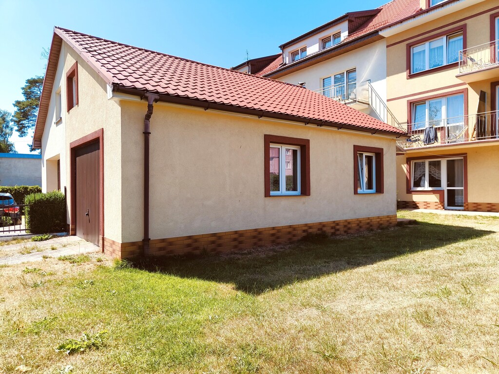 Na terenie działki znajduje się budynek garażowy z oddzielnym pomieszczeniem i łazienką. Istnieje możliwość adaptacji budynku na mieszkanie lub dodatkowy pokój gościnny.