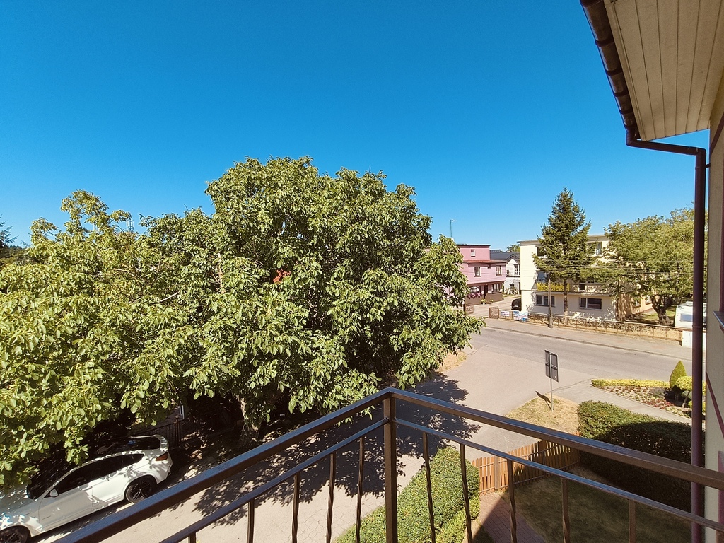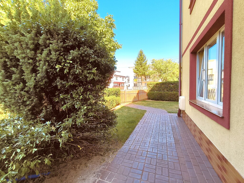 Niektóre z pokoi posiadają balkon. Mieszkanie na parterze (część prywatna właściciela) posiada wyjście na taras i ogród.