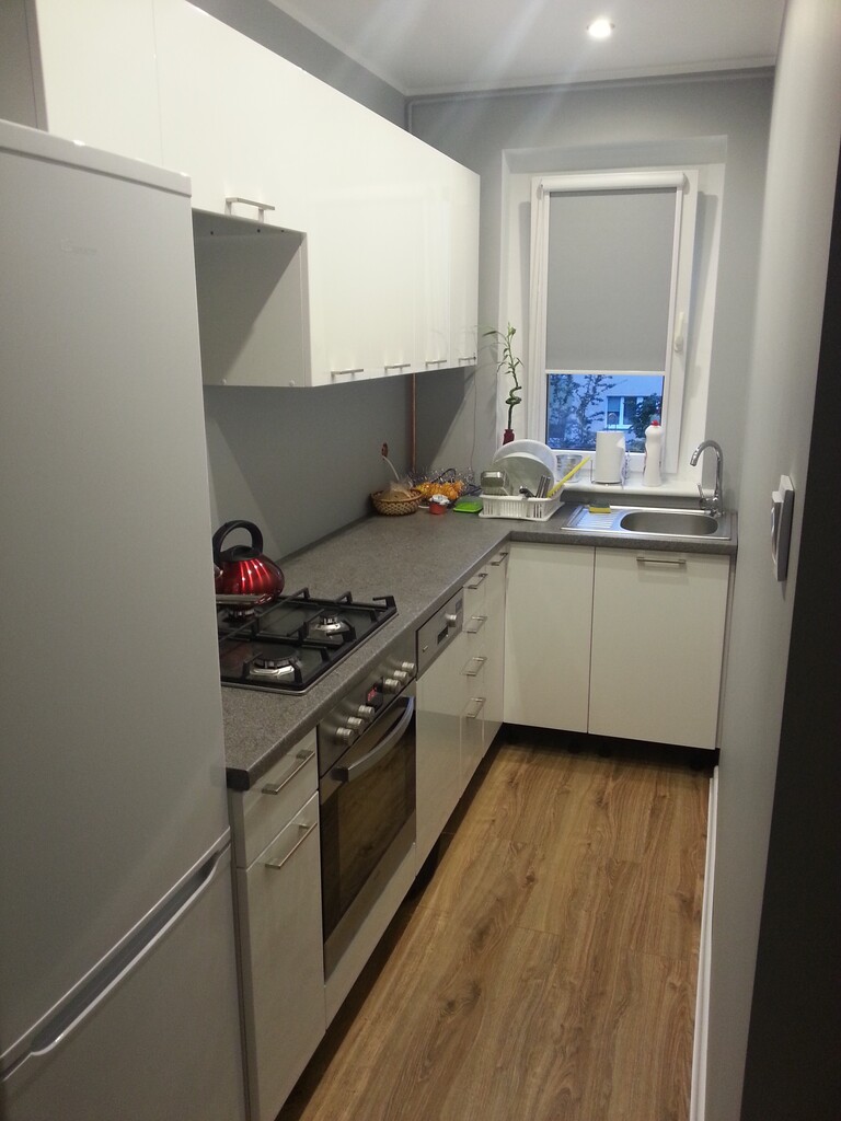 Widna, oddzielna kuchnia otwarta na korytarz,
