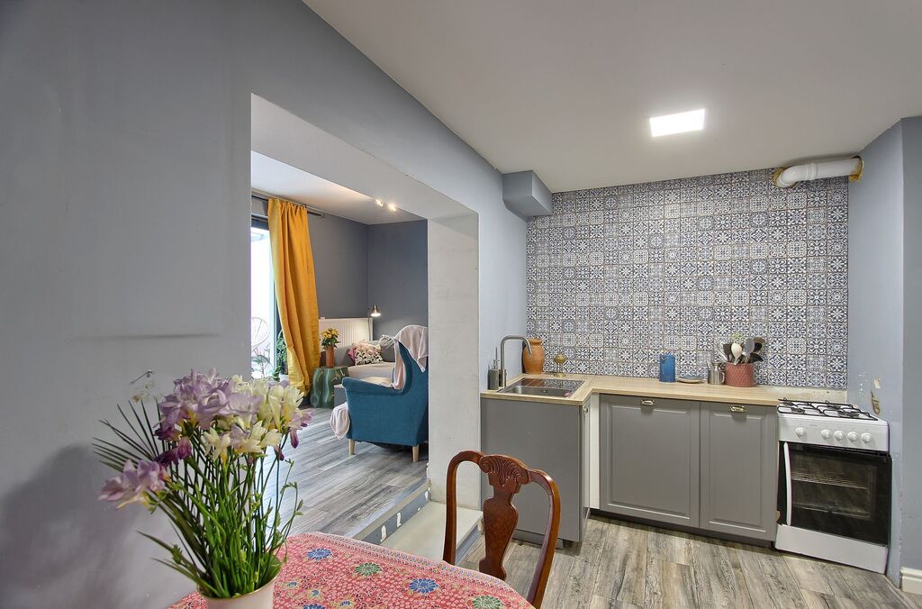 Mieszkanie znajduje się w budynku 4-rodzinnym, posiada bezpośrednie wejście z ulicy oraz wyjście na ogród.