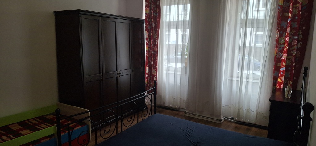 Dwa duże pokoje z których pierwszy jest naturalnie salonem a drugi sypialnią z wielką szafą i ogromnym łóżkiem.
