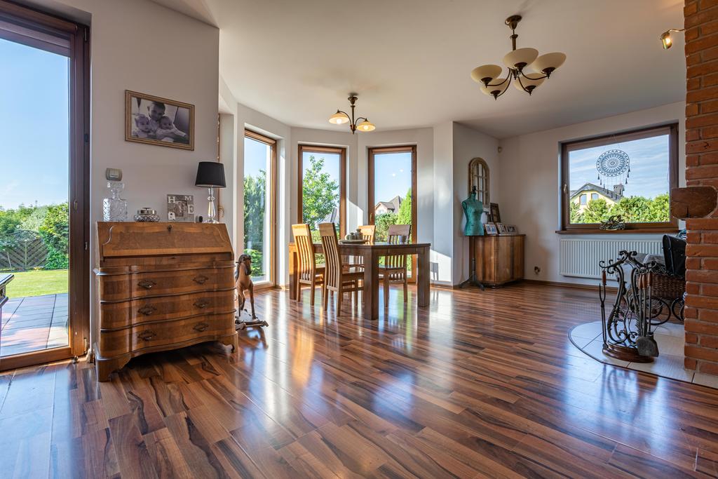 Warto dodać, że dom jest wyposażony w alarm oraz monitoring, a brama wjazdowa sterowana jest automatycznie.