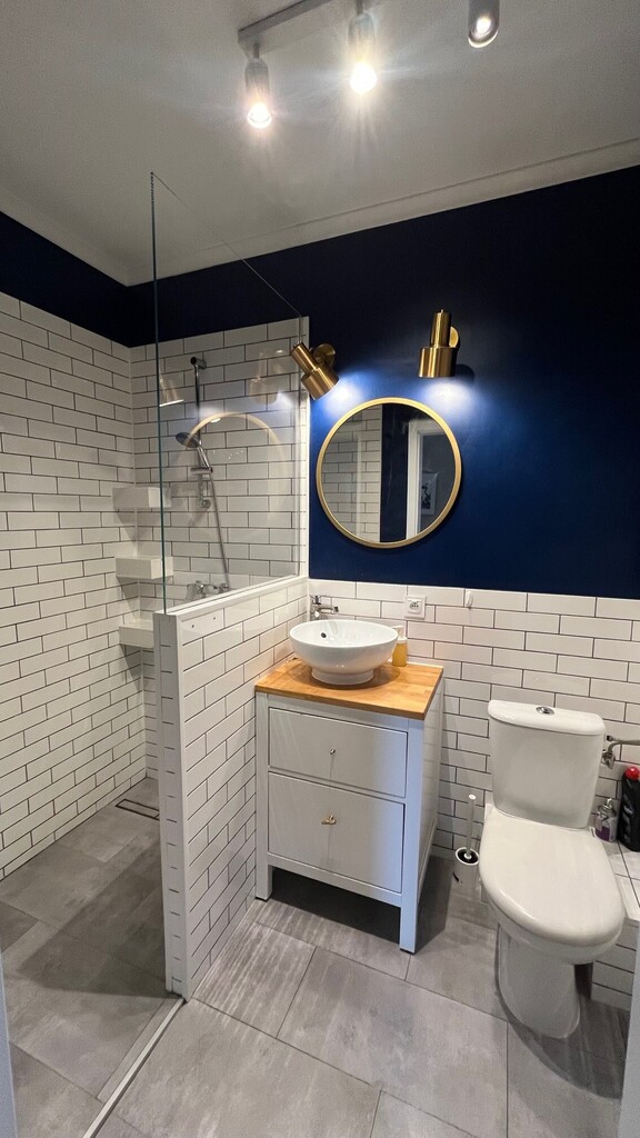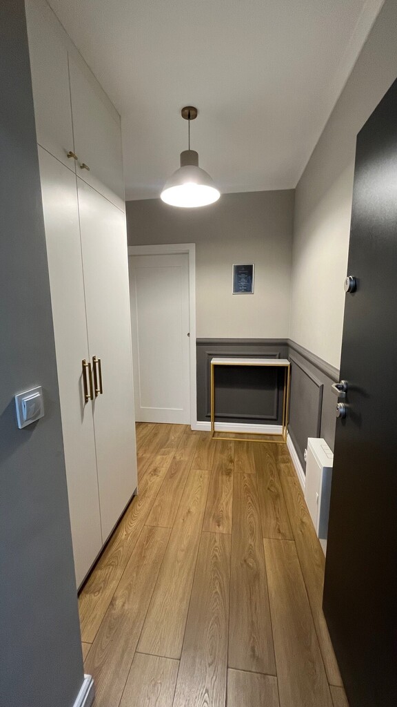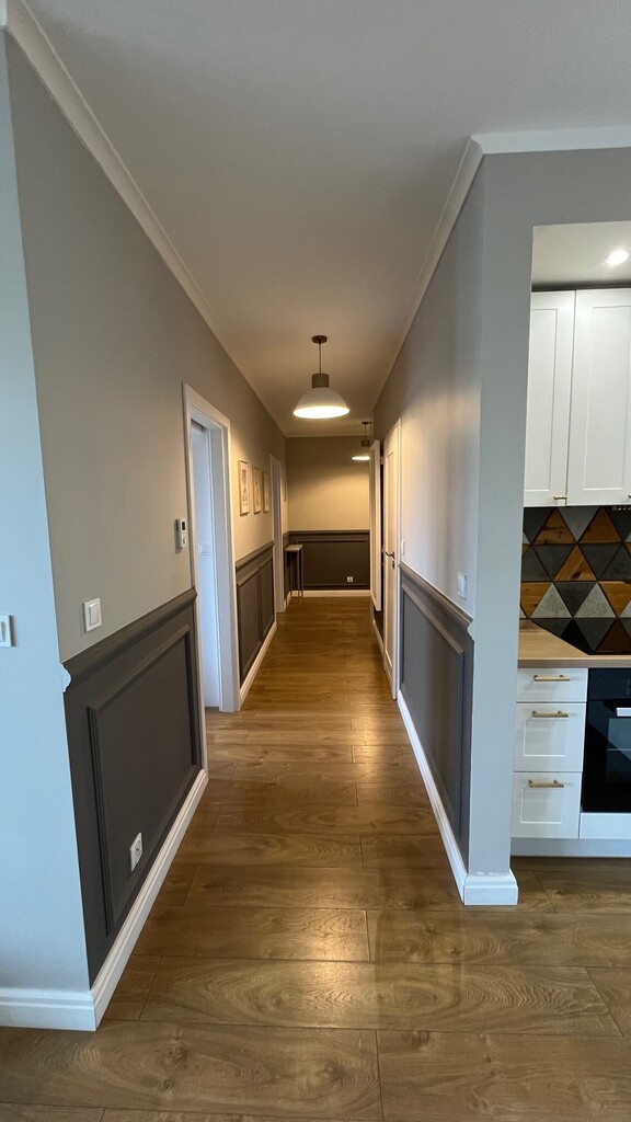 Na podłodze panele wysokiej klasy oraz kafle, ściany gładzone malowane.