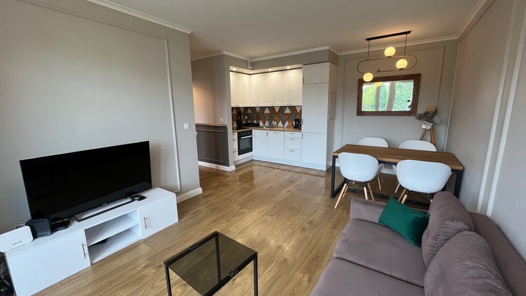 - duży salon połączony z aneksem kuchennym z wyjściem na ładny balkon