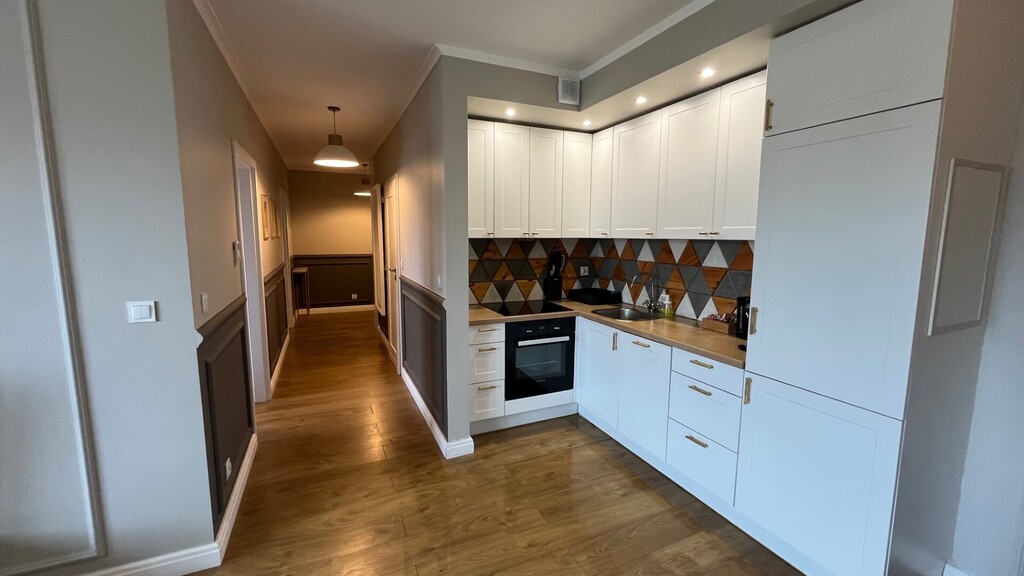 Kuchnia wyposażona w wysokiej jakości sprzęt AGD w zabudowie.