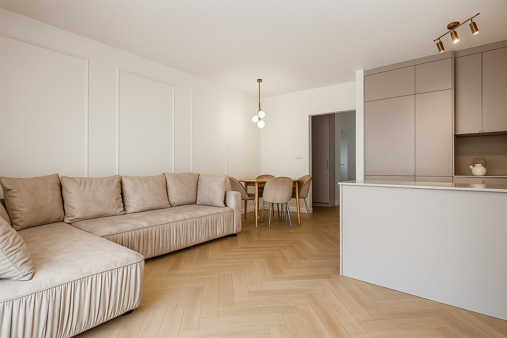 •Salon z aneksem kuchennym – jasna, przestronna przestrzeń do życia