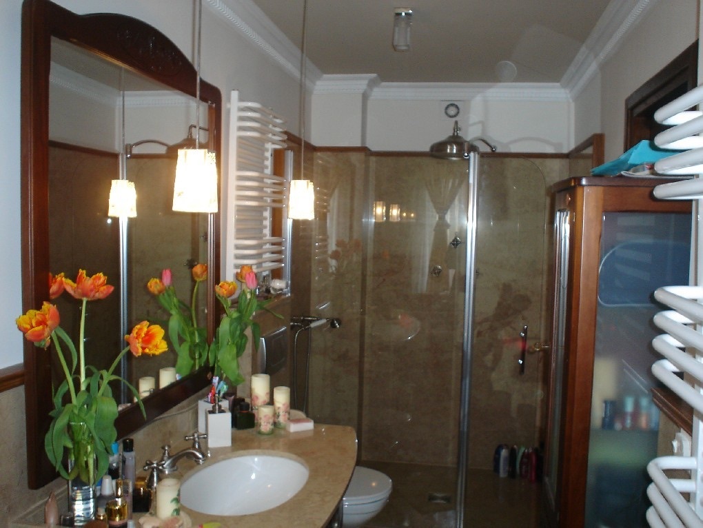 - łazienka (marmur zakończony listwą tikową, ogrzewanie podłogowe), wanna z hydromasażem, prysznic bez