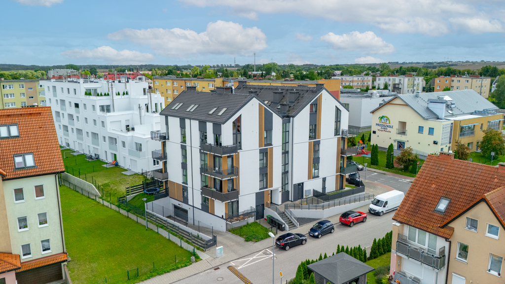 Kameralne osiedle o niskiej zabudowie, idealne dla osób ceniących spokój.