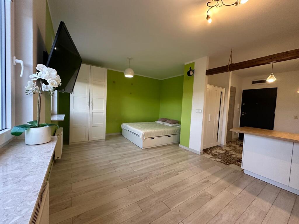 - salonu duży potencjał aranżacyjny – możliwość wydzielenia oddzielnej strefy sypialnianej lub stworzenia małego, 2-pokojowego mieszkania;