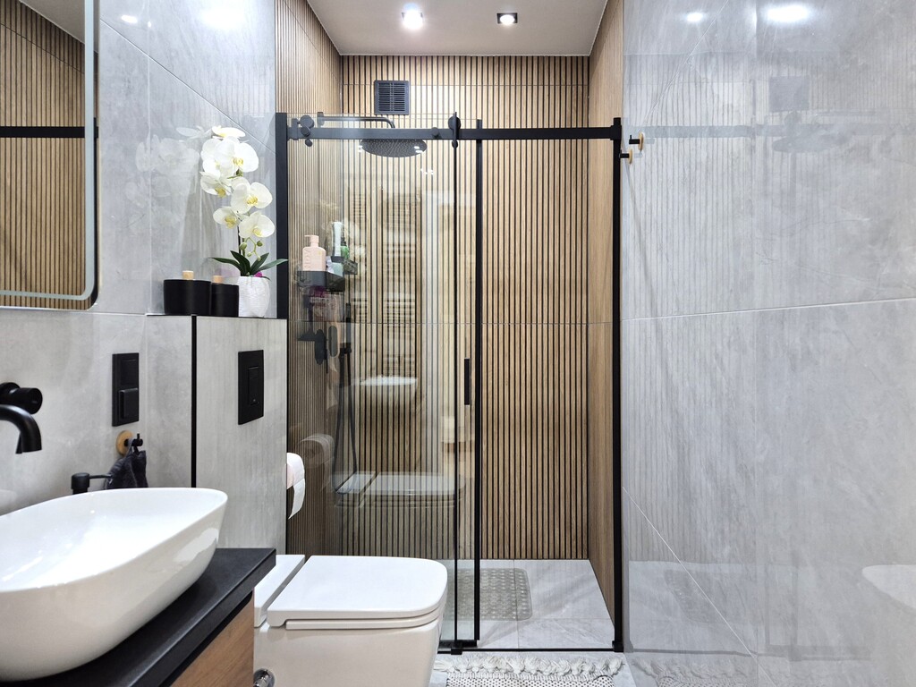 - łazienka z kabiną prysznicową typu walk-in