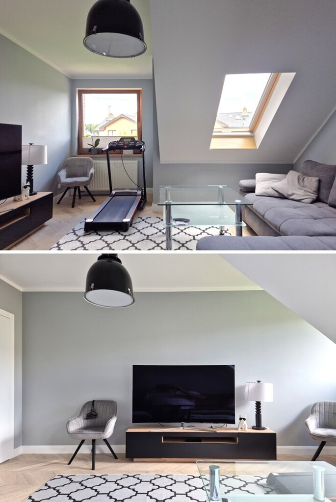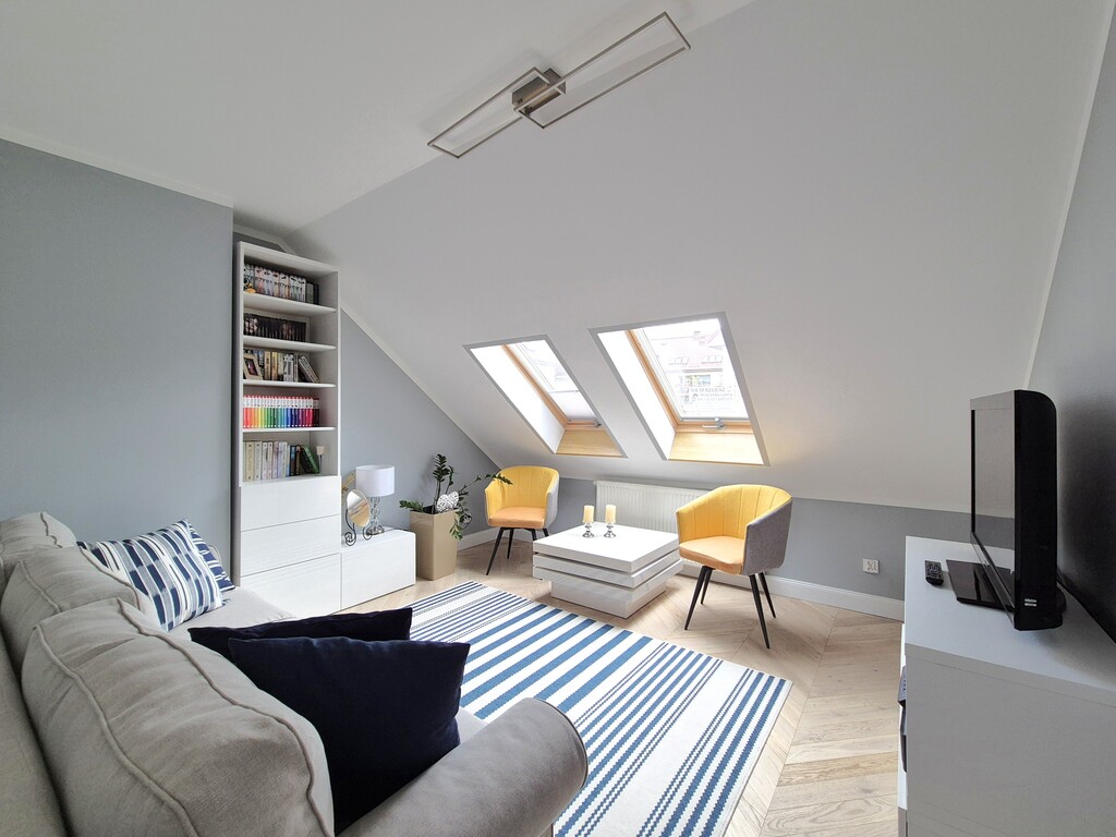 Strych z oknem, z wejściem w postaci schodów kasetowych opuszczanych z sufitu (około 25mkw).