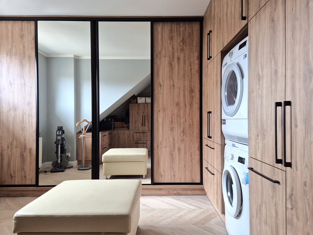 - duża garderoba z oknem wyposażona także w pralkę i osobną suszarkę