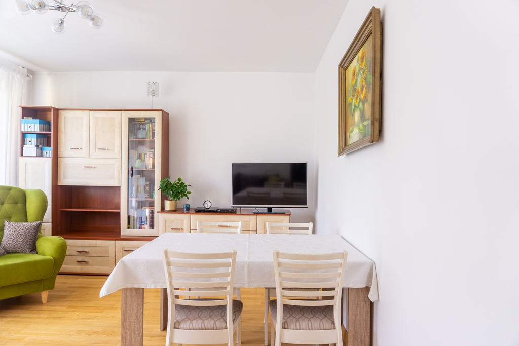 Mieszkanie jest zadbane i w dobrym stanie, nie wymaga żadnych remontów, jedynie drobnego odświeżenie ograniczającego się do odmalowania ścian.