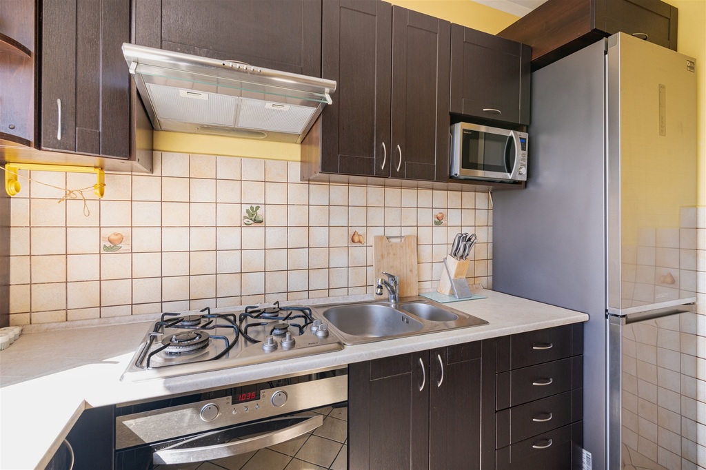 Na wyposażeniu: piekarnik, płyta gazowa, lodówka, mikrofalówka, pochłaniacz, pralka, dwa telewizory, sprzęt audio i odkurzacz,. Dużym atutem jest mnóstwo miejsca do przechowywania – liczne szafy i praktyczne rozwiązania.