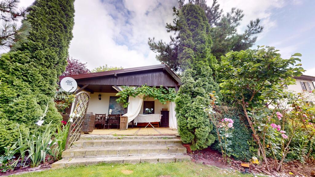 Dom otoczony jest przepięknym ogrodem, liczne nasadzenia, krzewy, oczko wodne, w pełni zautomatyzowany system nawadniania. Na terenie posesji znajduje się również domek gościnny (salon z aneksem kuchennym plus dwie sypialnie, łazienka z wc), sauna i jacuzzi. Standard pomieszczeń - foto.